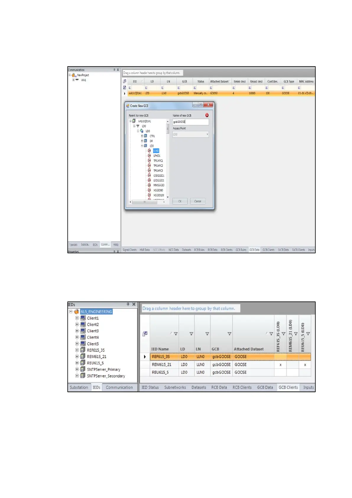 ABB UniGear Digital - Figure 50: Naming a GOOSE Control Block; Figure 51: GCB Client