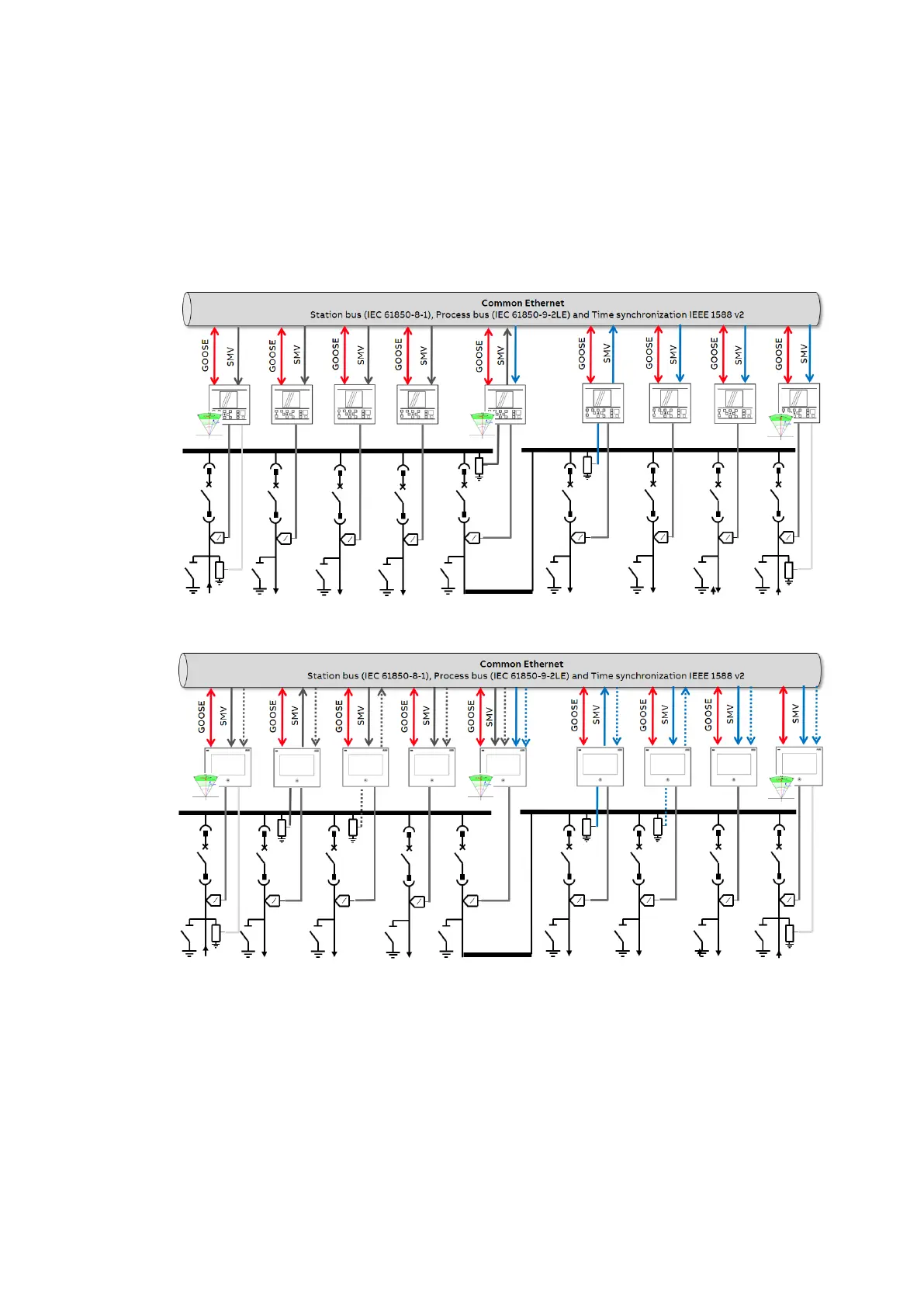 Figure 56: Example of Process bus application of voltage sharing redundancy and synchro