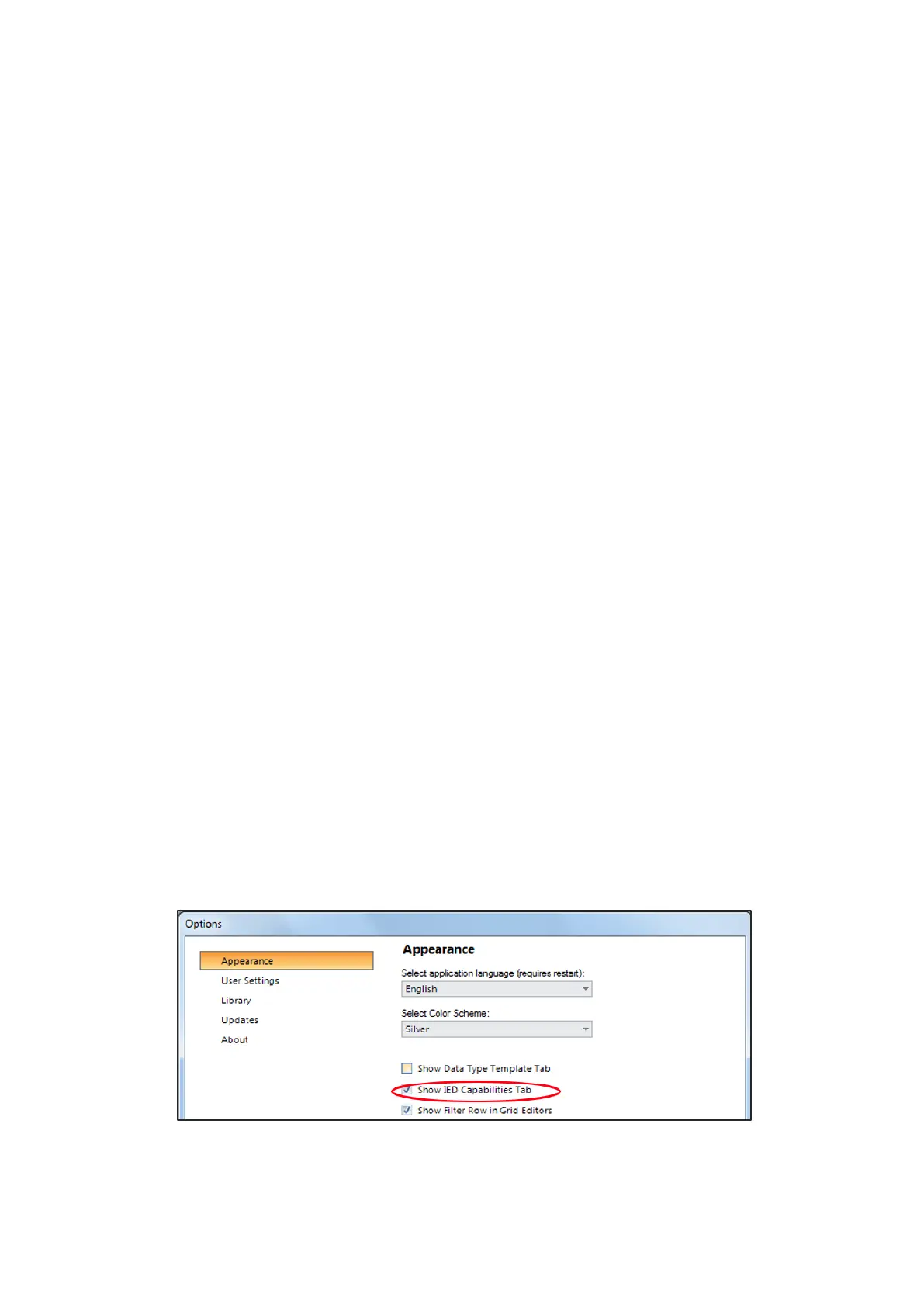In the Options dialog box in IET600, click Show IED Capabilities Tab.