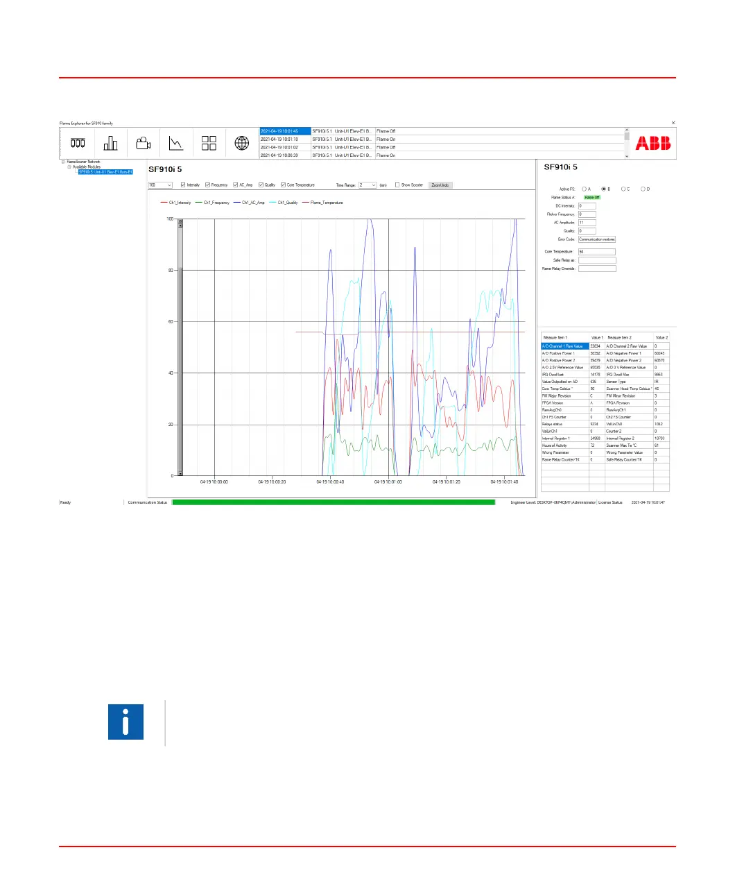 Up to four SF910i scanners can be displayed simultaneously on the Flame Explorer