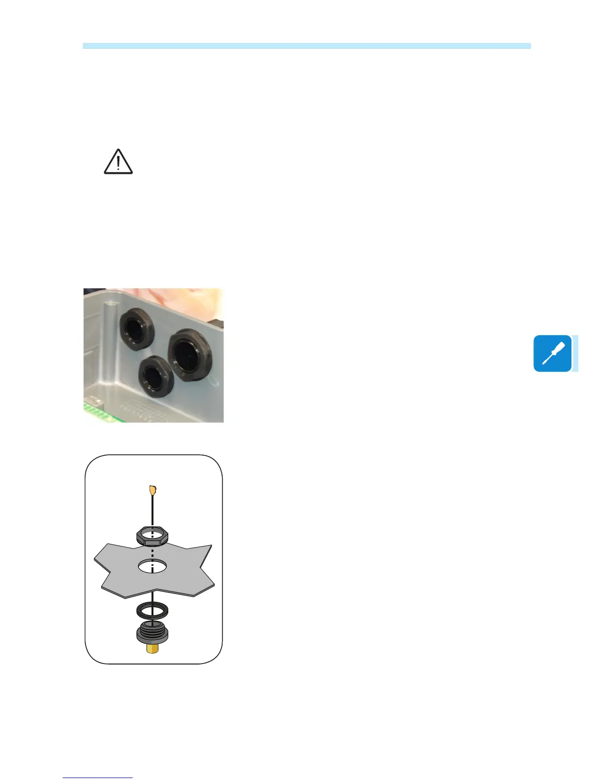 of one of the service cable glands (size M20).