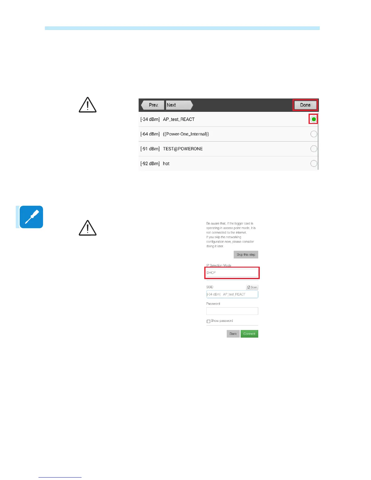 Once the network has been selected, conrm.
