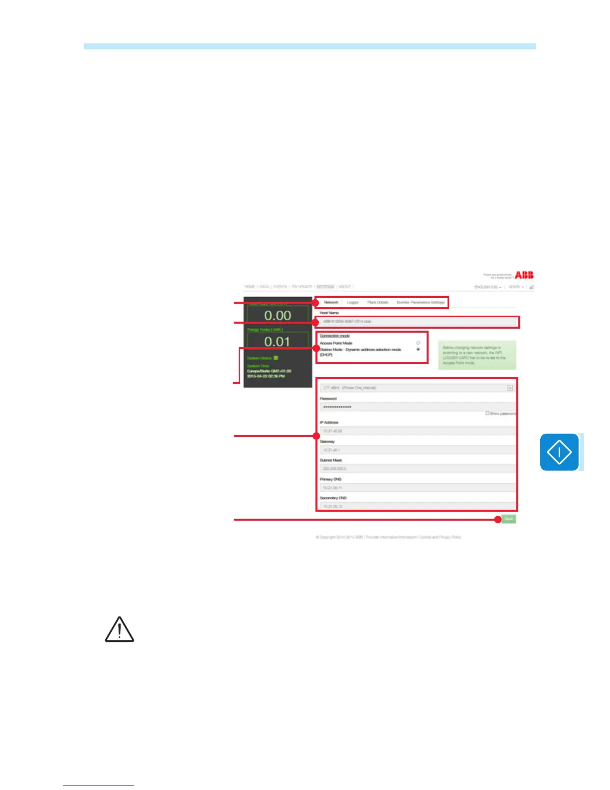 sections: Network (network settings), Logger (log-in settings), Plant De-