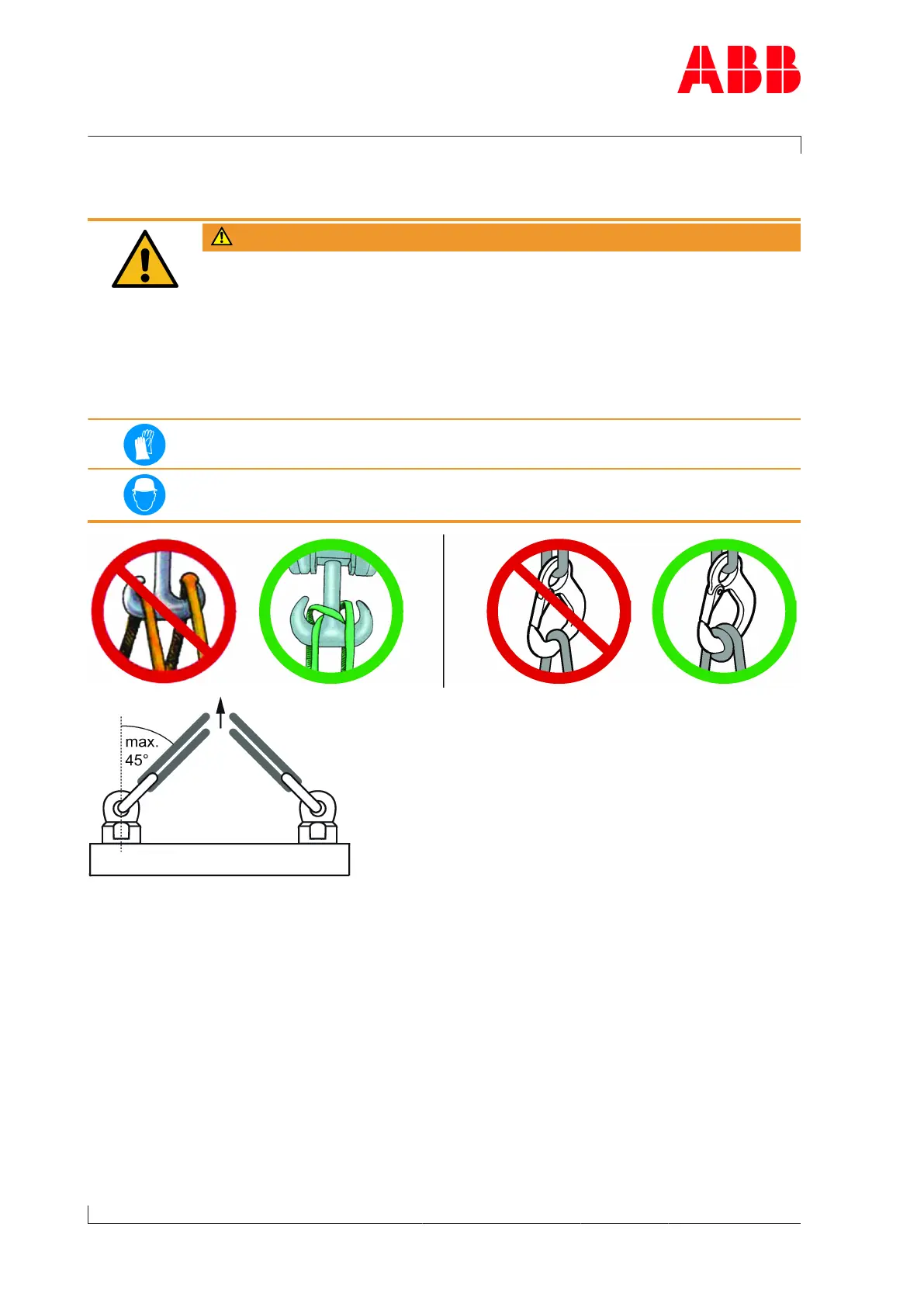 If there are two or more suspension points, the attachment angle of 45° must not be ex-