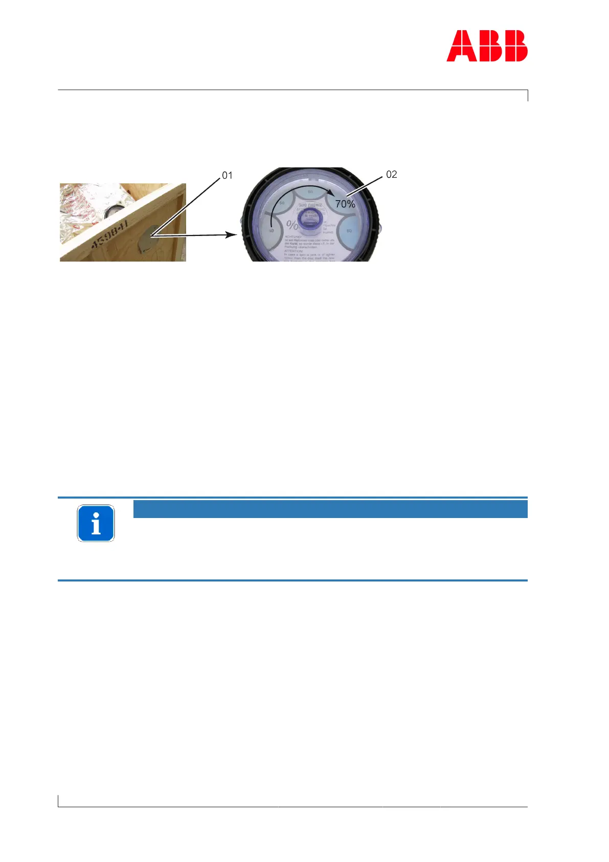 u Check the hygrometer(02) in the sight-glass. There is an opening(01) in the wooden