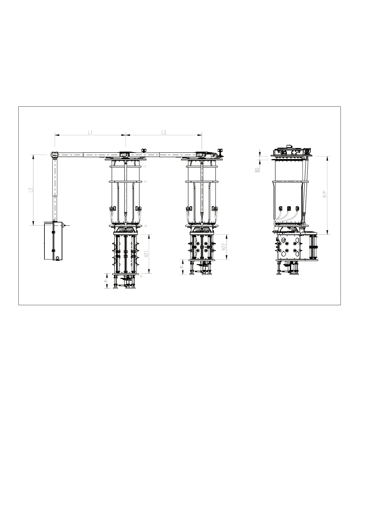 Fig. 55. Dimensions, type VUCL.B with tap selector III and with tie-in resistor switch.