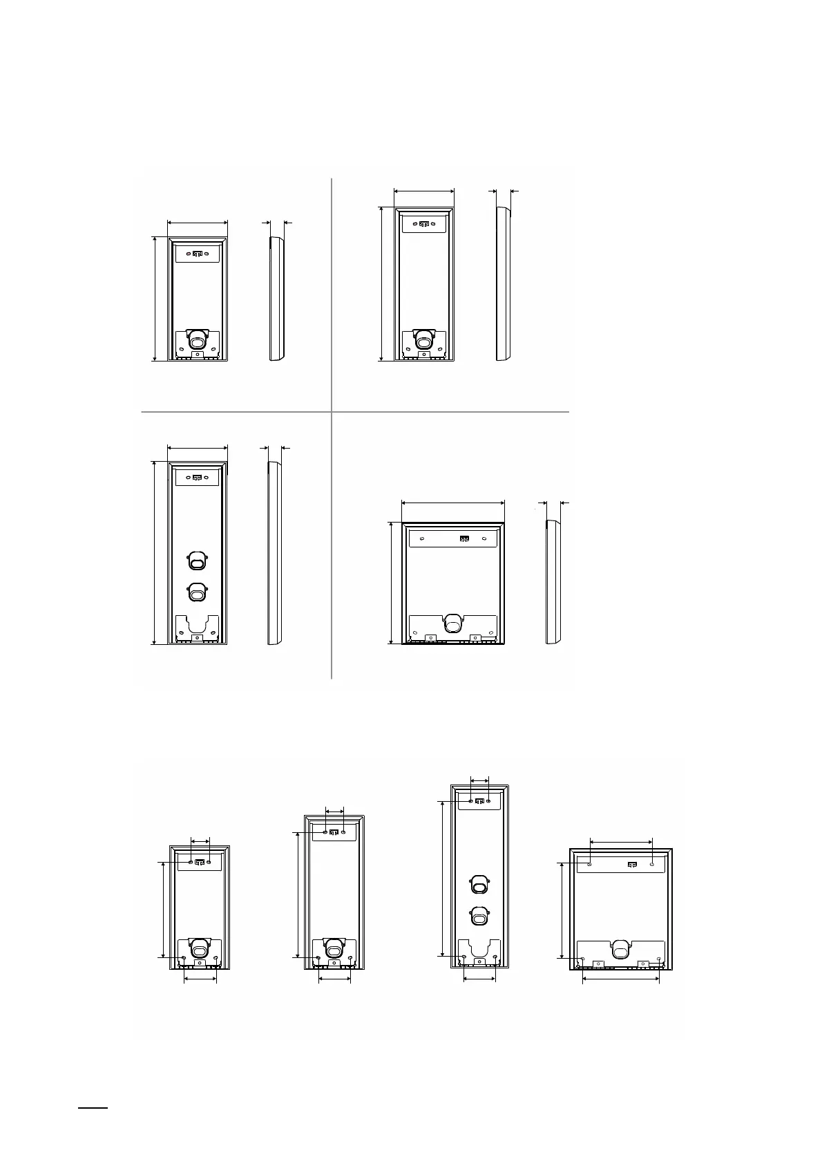 Fig. 39: Dimensions of surface-mounted installation boxes of outdoor stations (dimensions in mm)