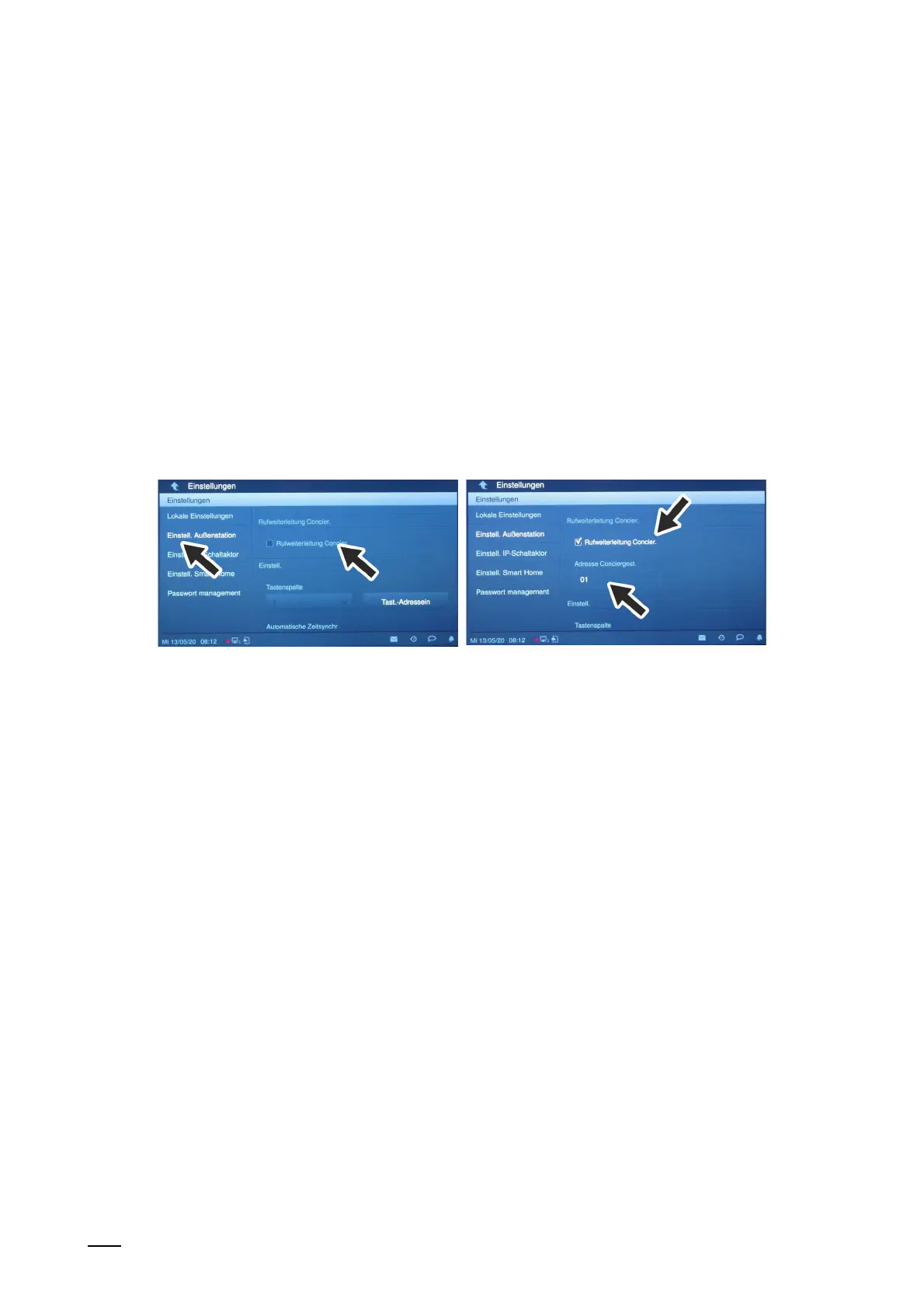 1. Enable the "Outdoor station setting / "Concierge call forward" function on the indoor station.