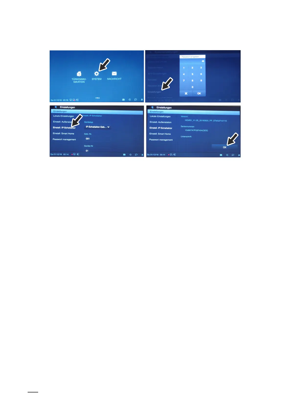 4. Switch to menu "System / Settings" at the indoor station.