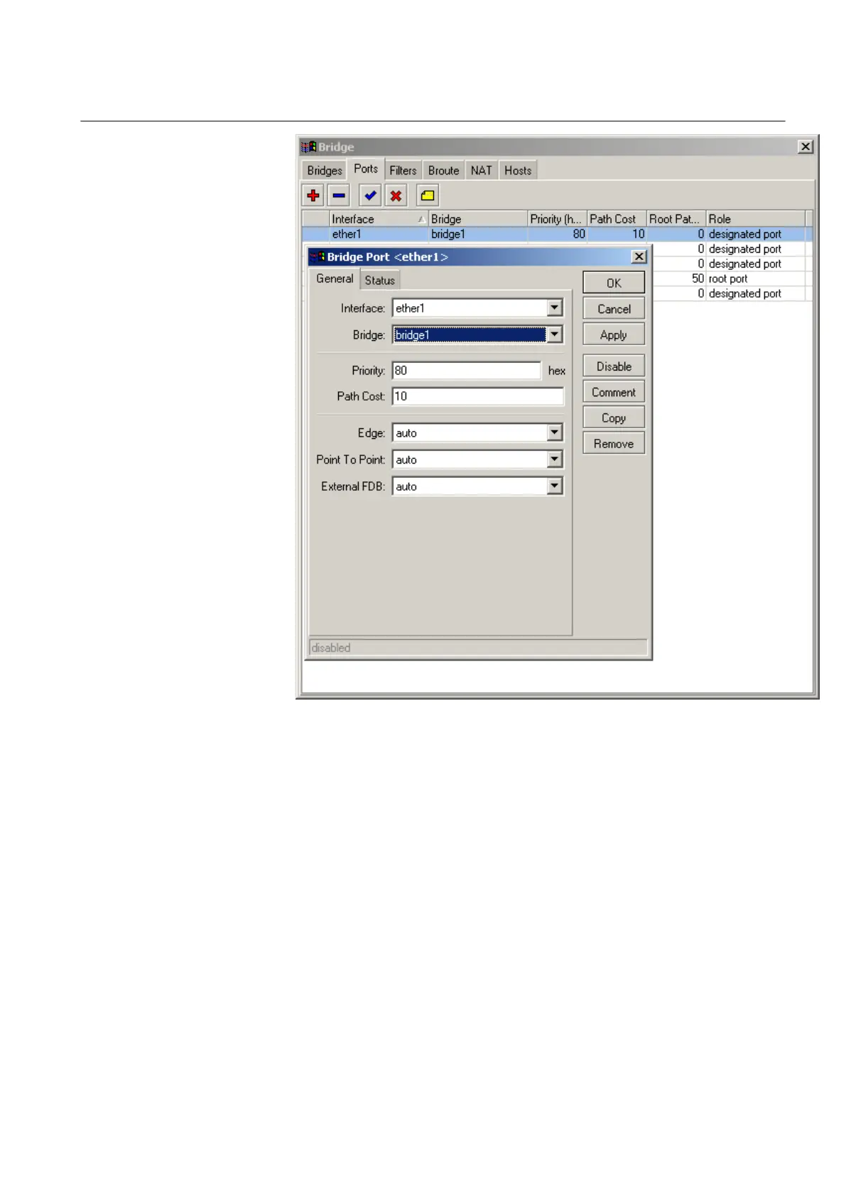 Figure 20: Interface port settings for the bridge