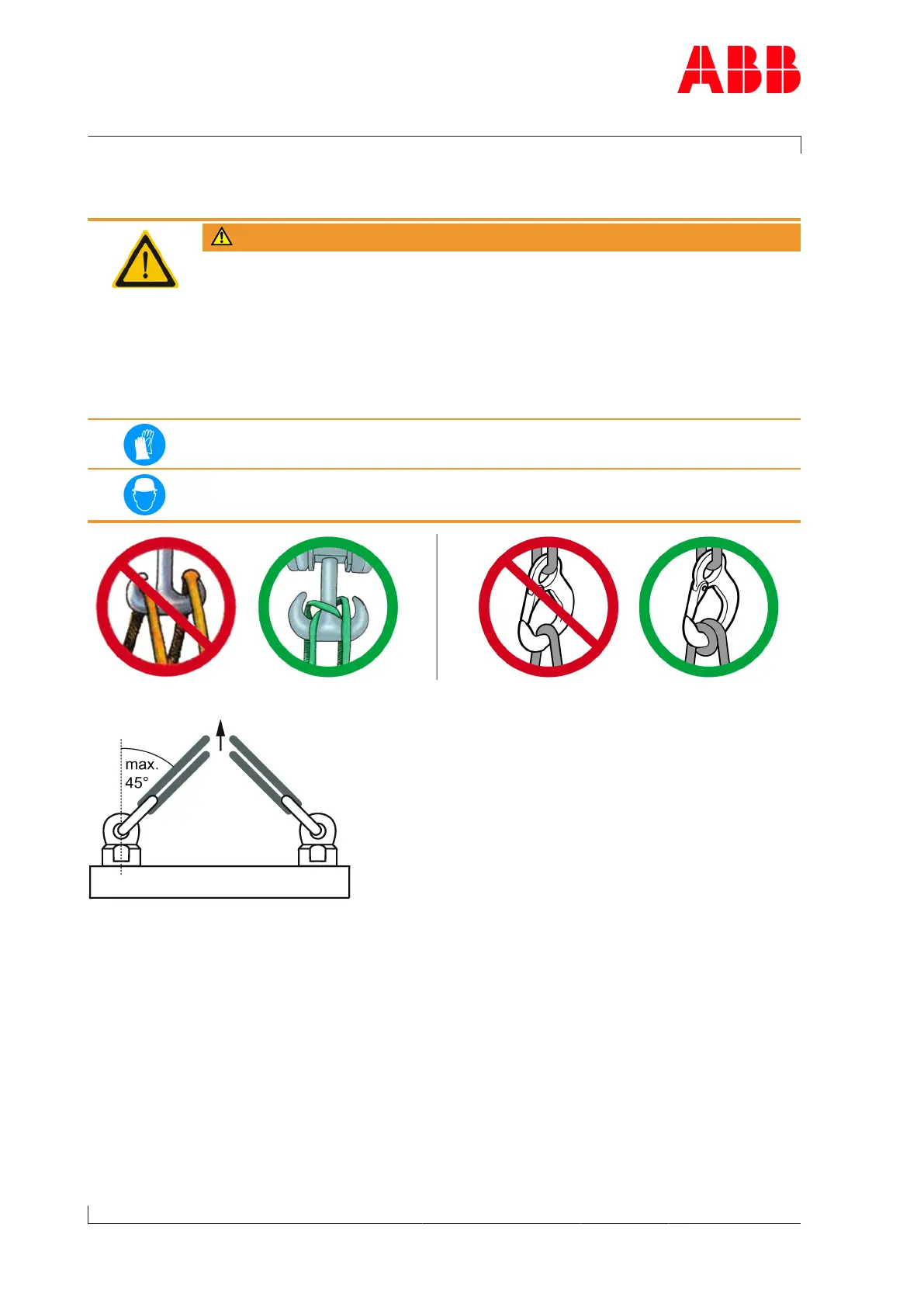If there are two or more suspension points, the attachment angle of 45° must not be ex-