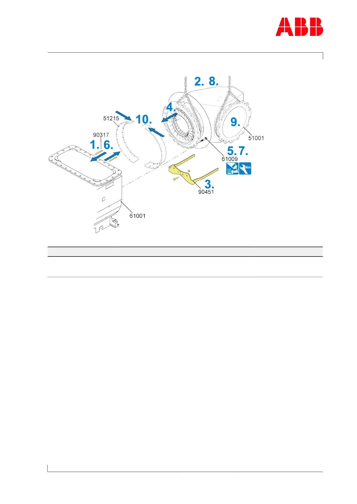 3. Dismantle and remove support (90451) from the gas inlet casing (51001).