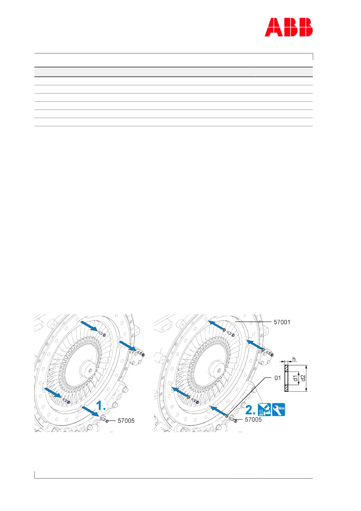 provided in accordance with the following table. These washers(01) are not supplied by ABB.