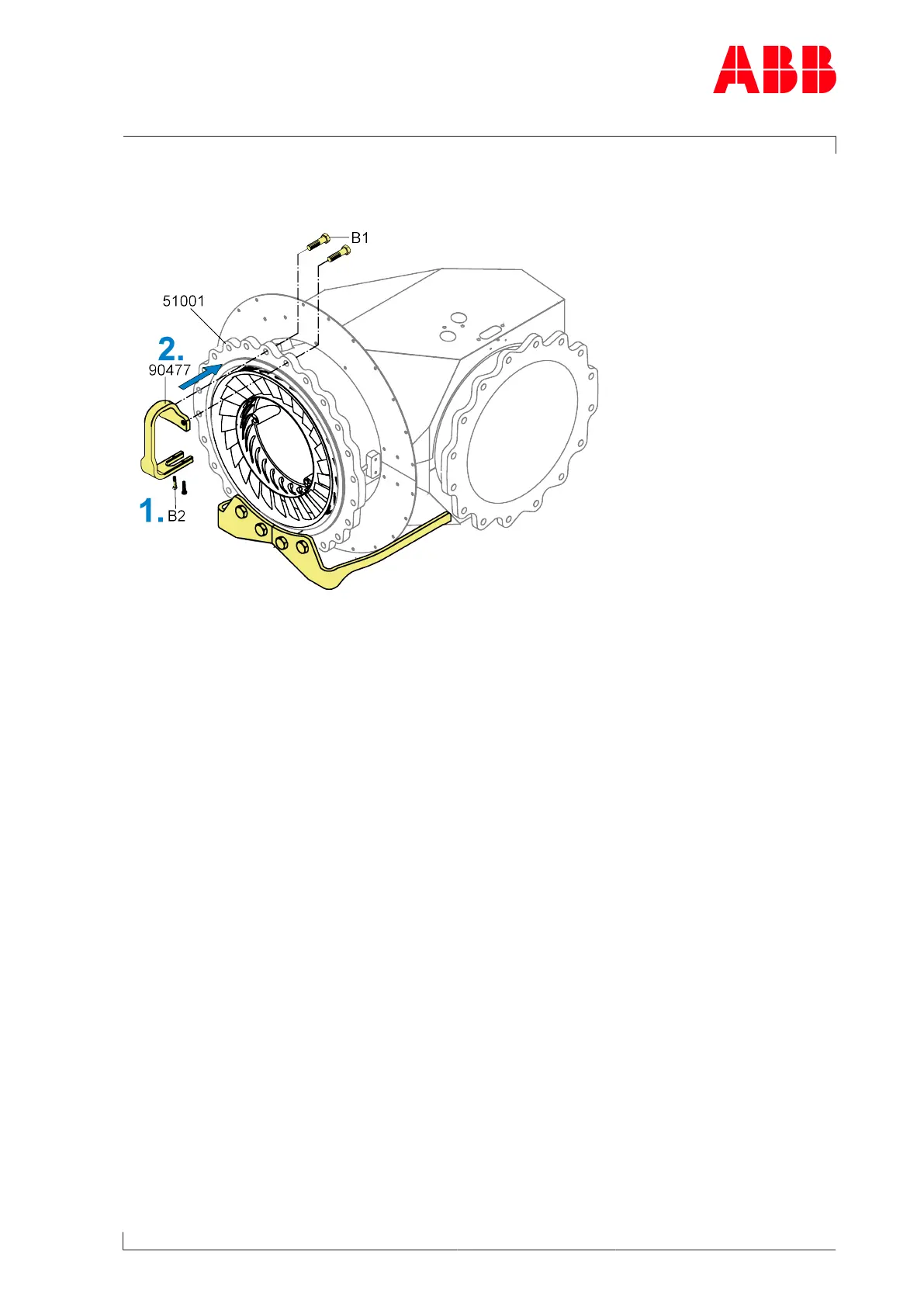 2. Fit the nozzle ring holder (90477) with screws (B