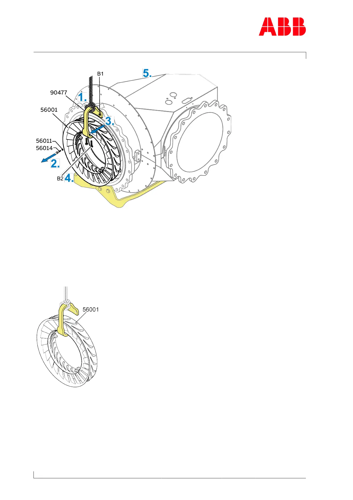 u Use the crane to remove and put down the nozzle ring (56001).