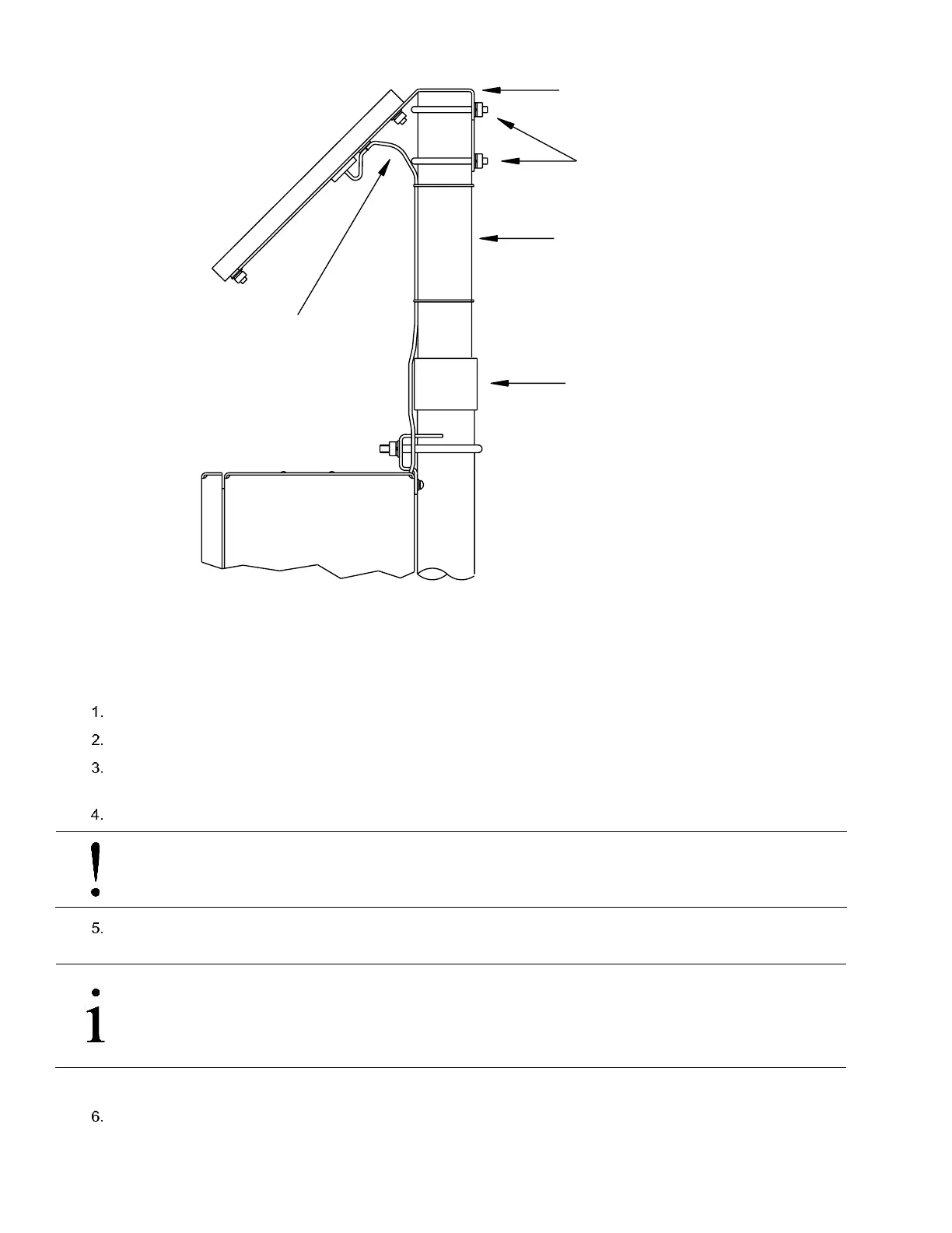 Attach the solar panel mounting plate to the top end of the 2” extension pipe with the U-bolts and associated mounting