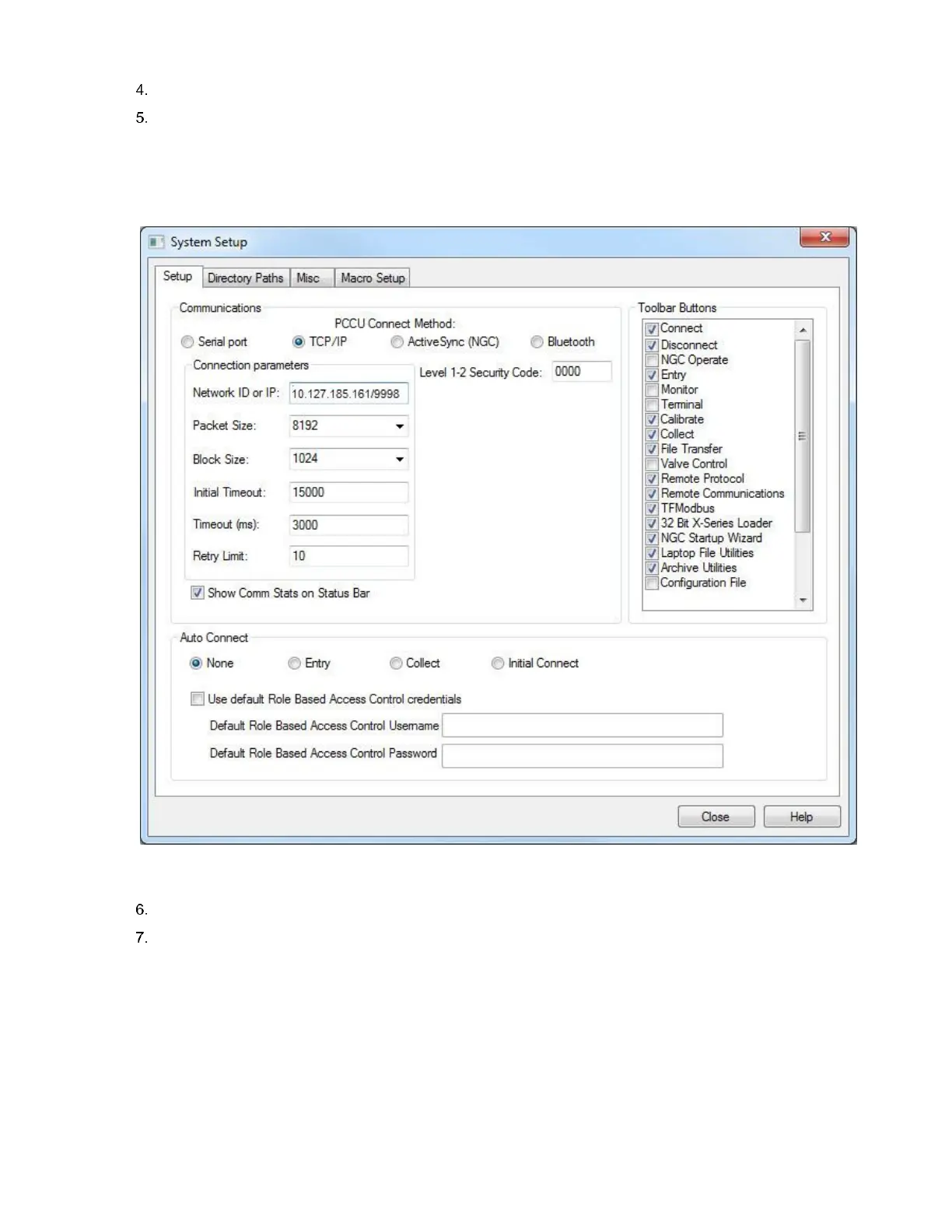 Click Close to exit setup and return to the PCCU main screen.