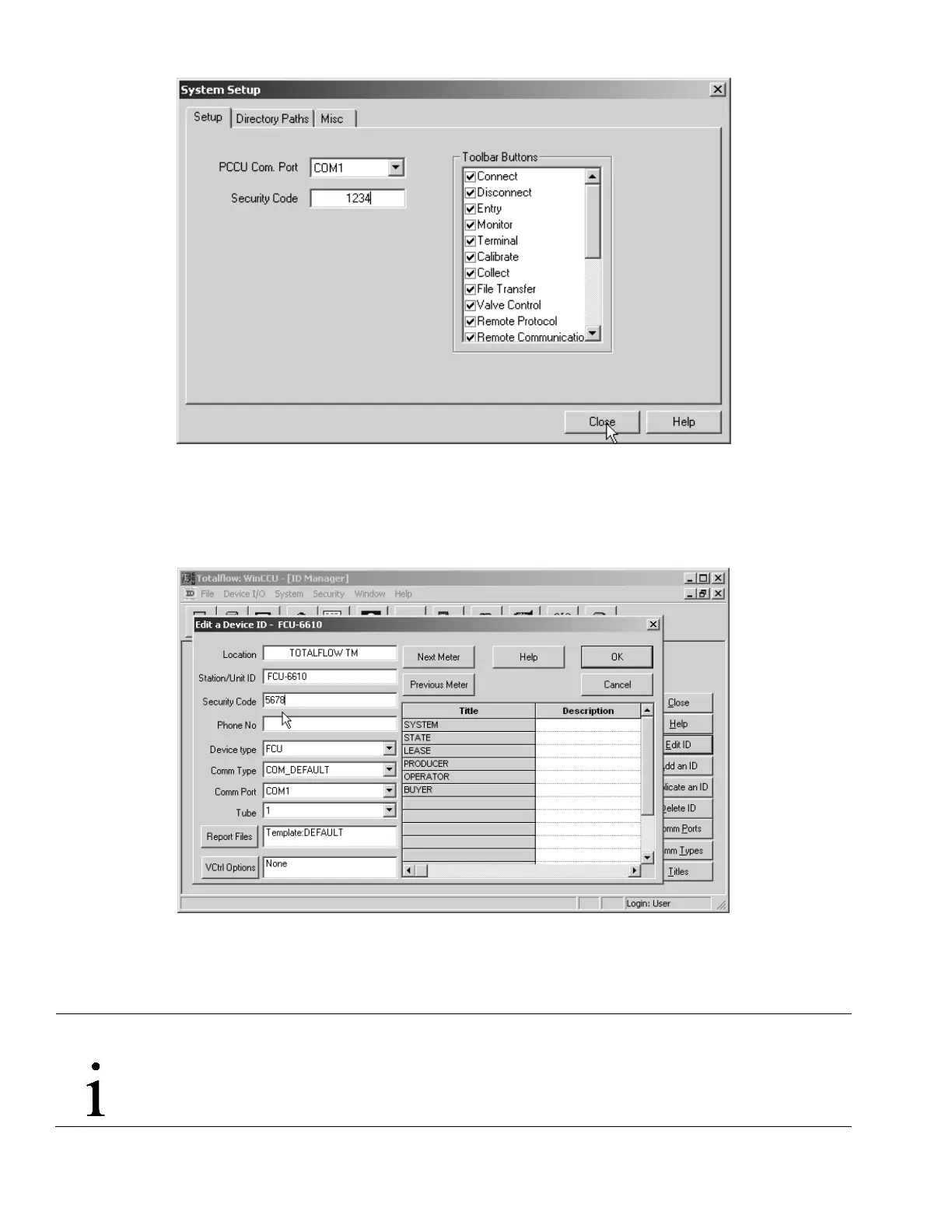 WinCCU32 will also require appropriate security codes (see Figure 73). Highlight the appropriate meter, and click Edit ID.