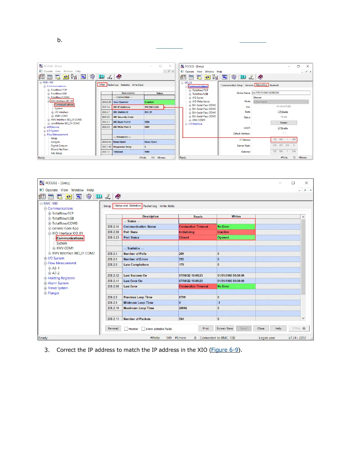 If the IP value for the RMC does not match the value for the XIO (Figure 6-7), the RMC-XIO