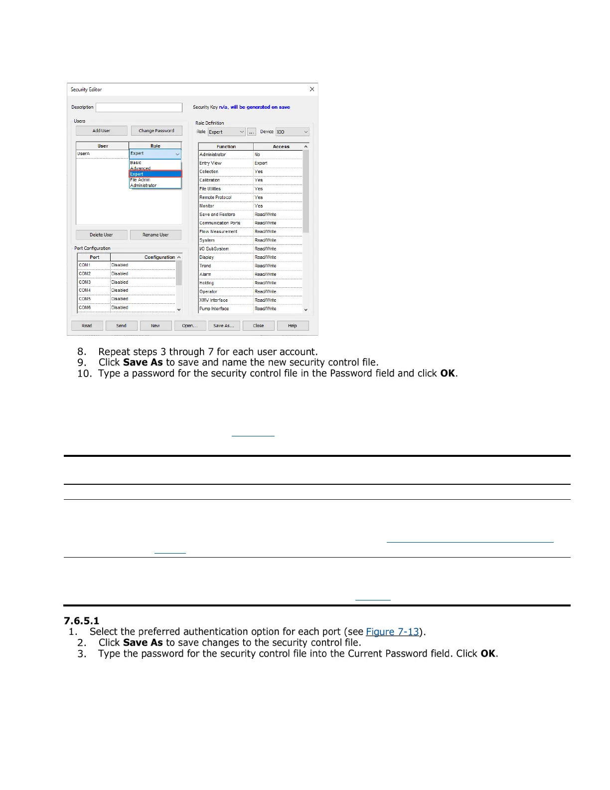 Enabling RBAC authentication on communication ports secures access to the device. Connection to the