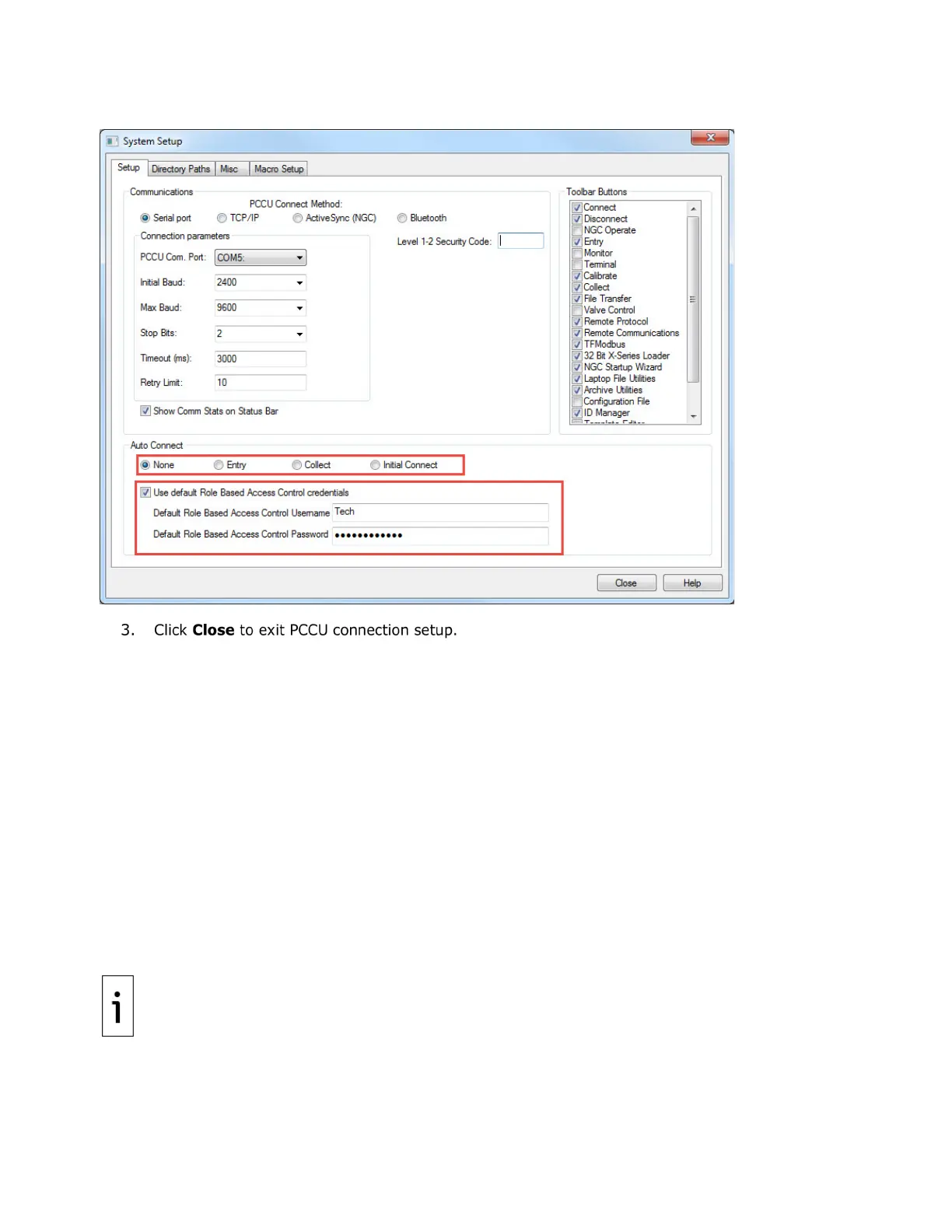 Figure 7-16: System Setup Auto Connect and RBAC credentials
