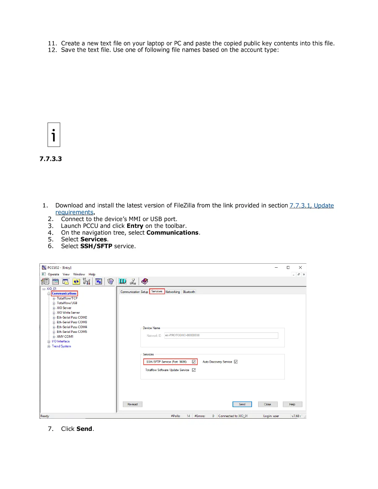 device. The Totalflow user account is accessible after the key update operation, either with the