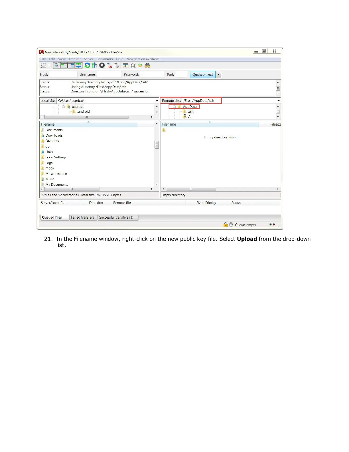 Figure 7-31: Open the /Flash/AppData/.ssh/ directory