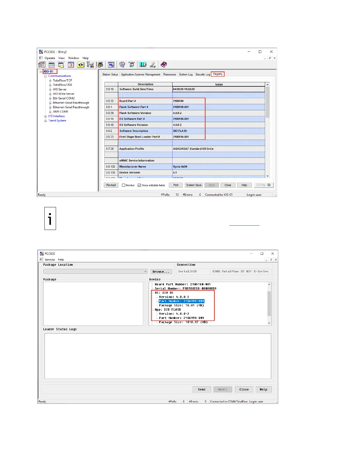 Figure 8-24: XIO software part numbers from the Loader