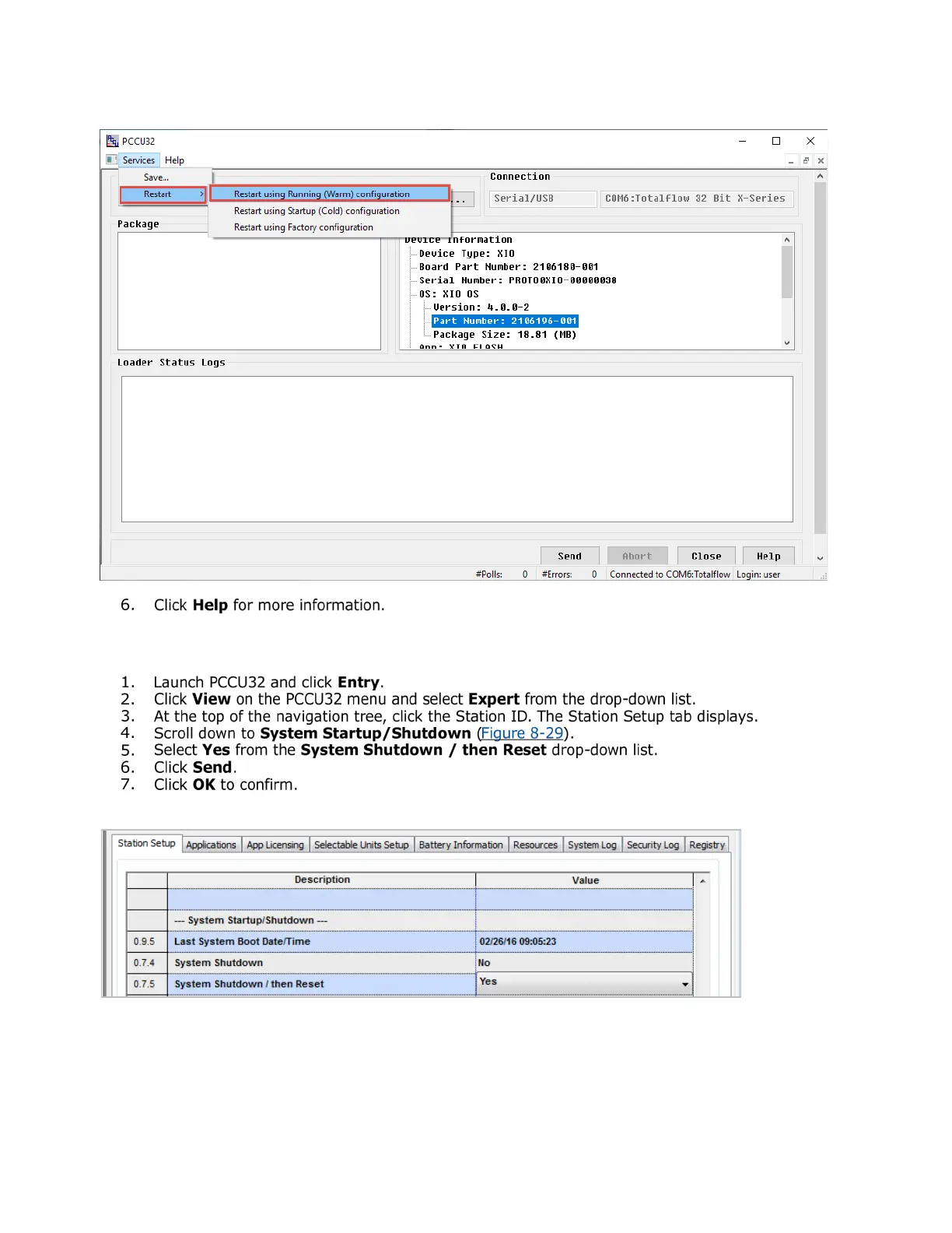 8.5.4 Warm restart from PCCU Entry mode