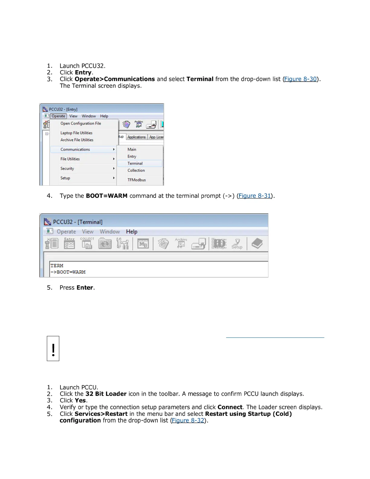 entry mode or from the PCCU main screen. This method of warm restart requires command entry.