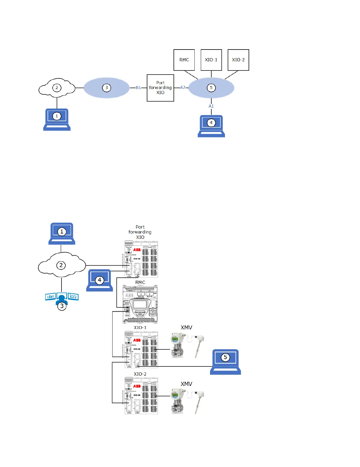 WAN (2). The field devices connect to port B2. In this scenario, local access to the field devices attached