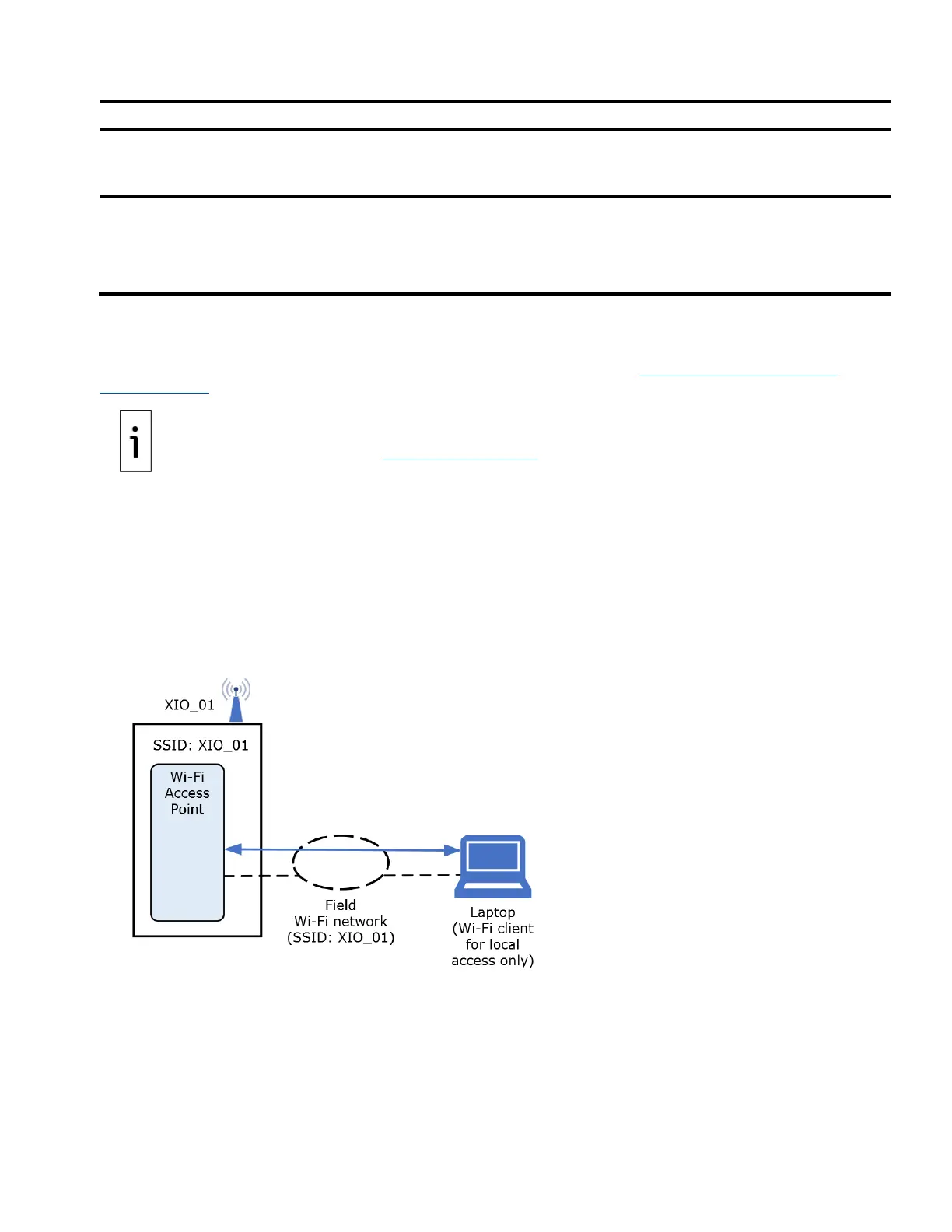 The XIO supports local wireless access by Wi-Fi clients. Wi-Fi clients can establish connections to the XIO