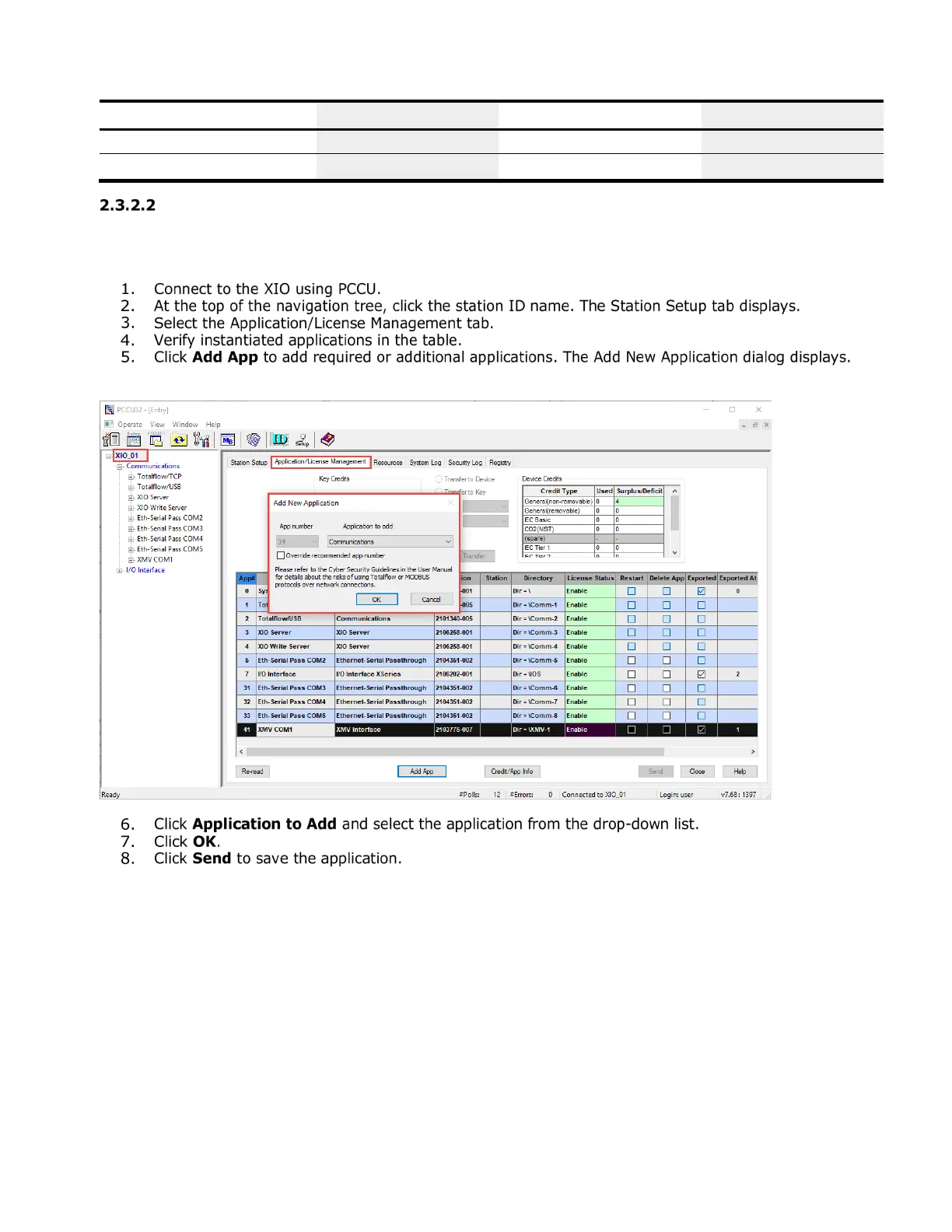 Figure 2-12: Adding applications on the XIO Application/License management tab