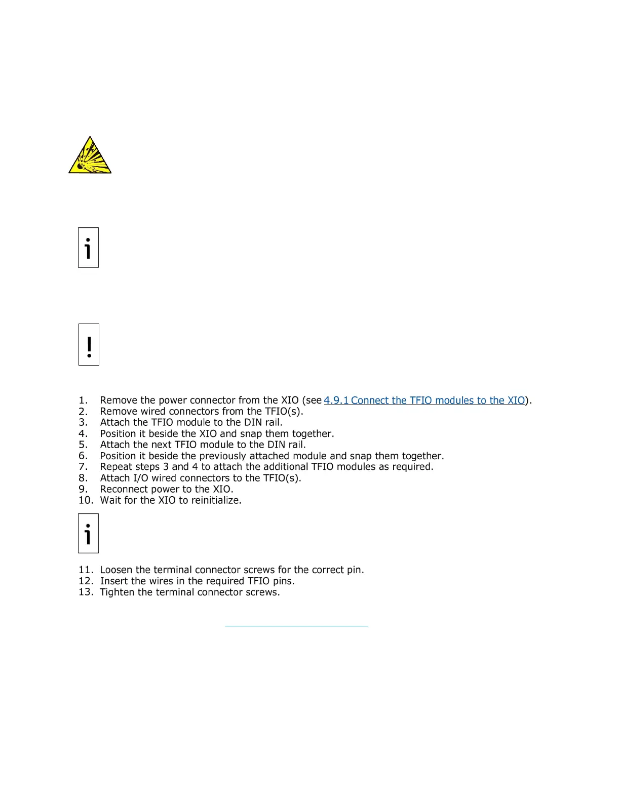 Wiring between the XIO, TFIO modules and field equipment must meet the requirements for