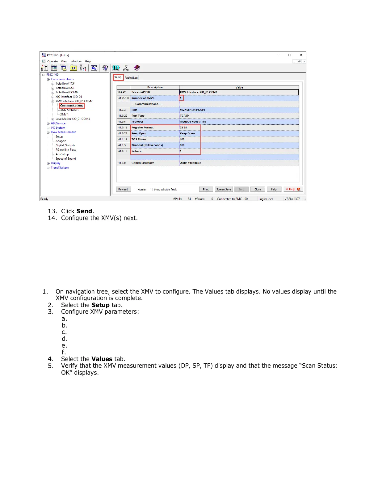 application on the RMC supports the XMV configuration of the multivariable connected to the XIO COM