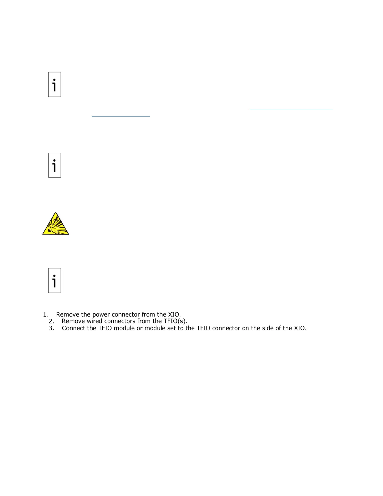 when the XIO is powered. Plan connection or removal of the TFIO modules and wired