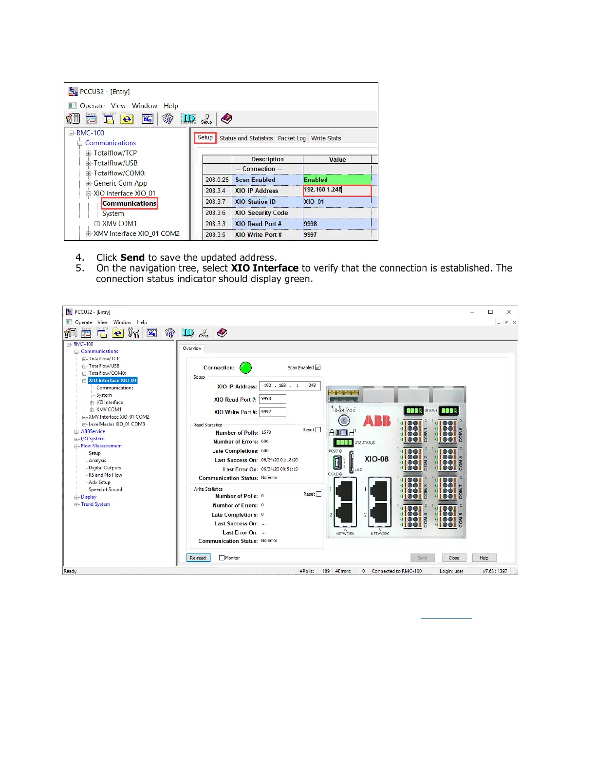 Figure 6-10: XIO Interface overview screen - RMC-XIO connection successfully established