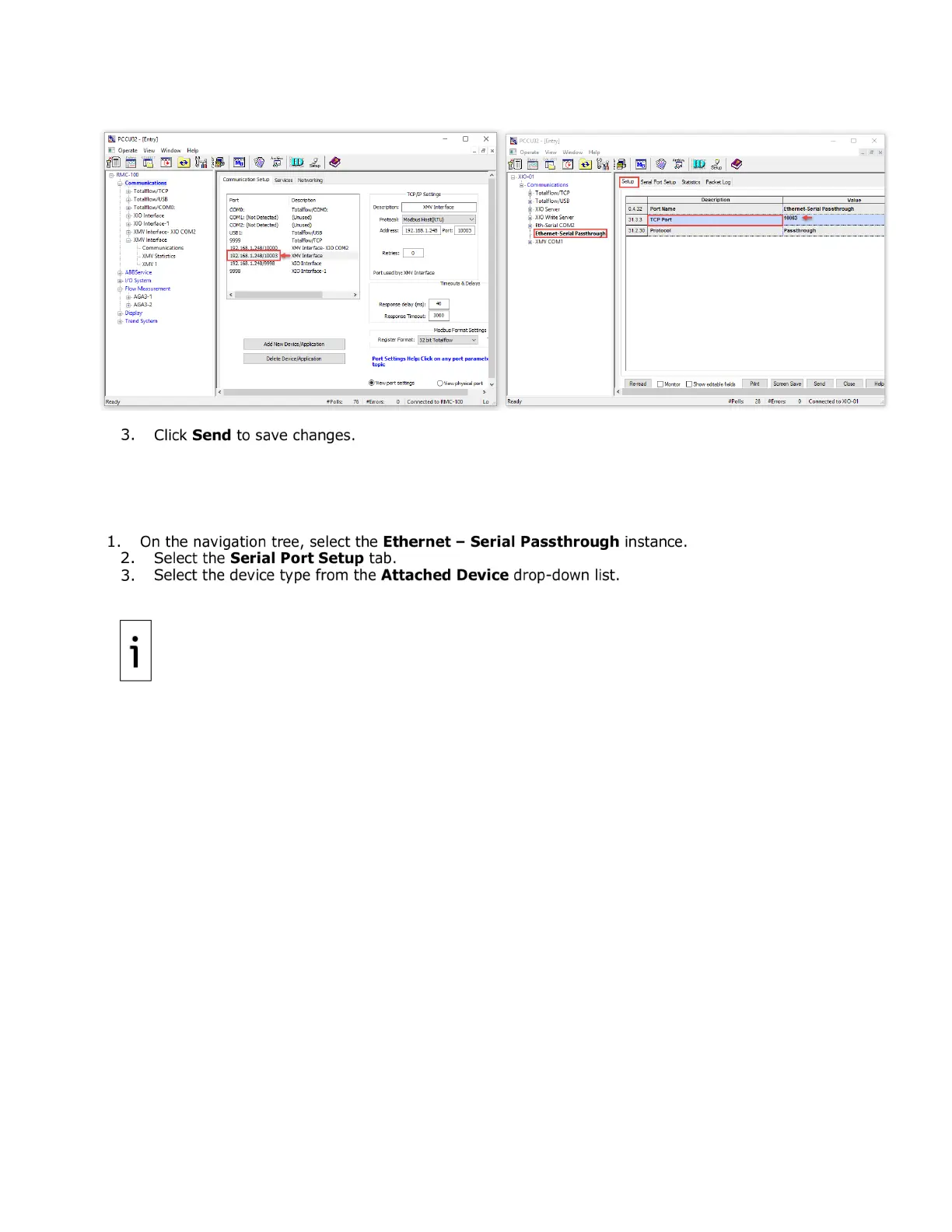 Configure the Ethernet-Serial Passthrough instance for the correct port and attached device type.