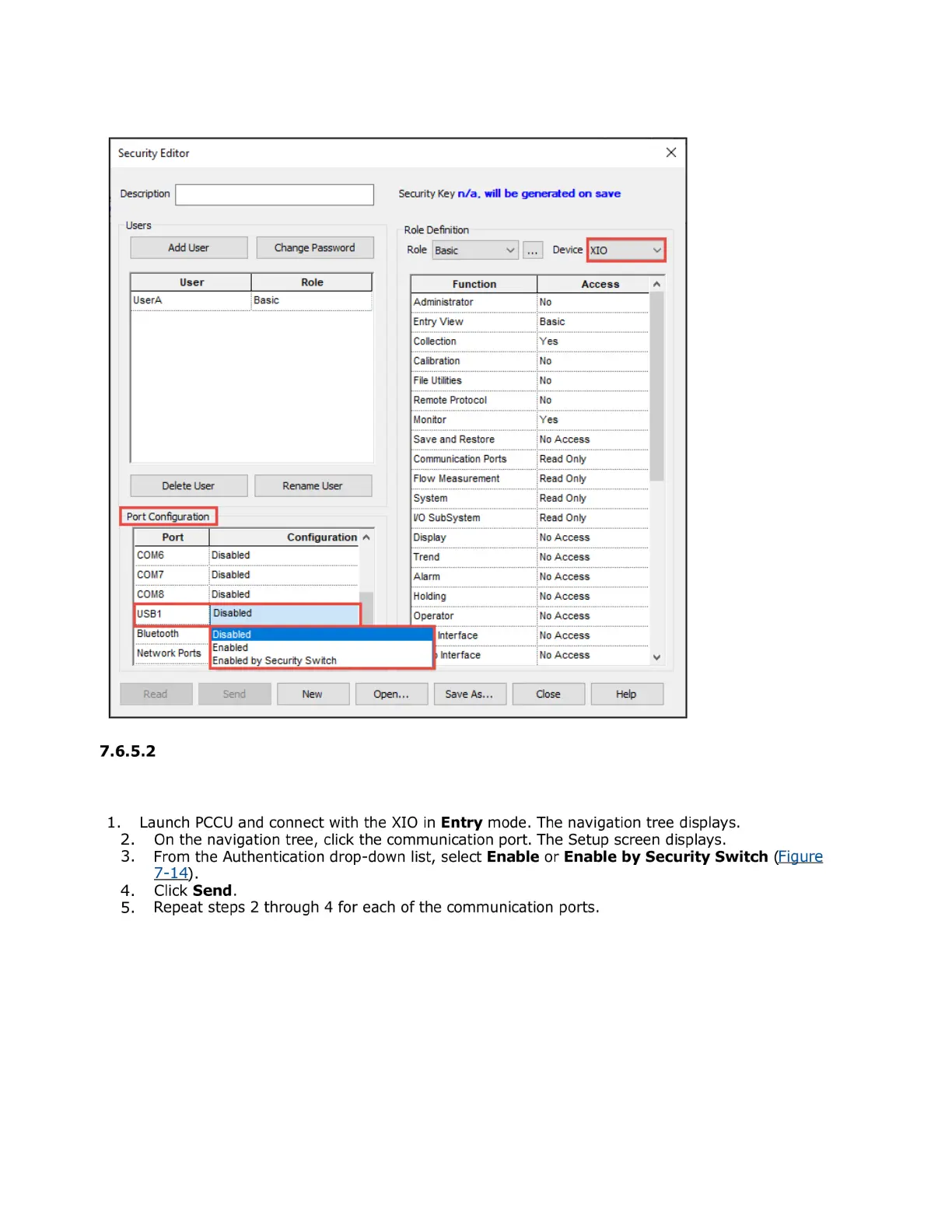 Use entry mode in Advanced or Expert view to configure or override communication port security: