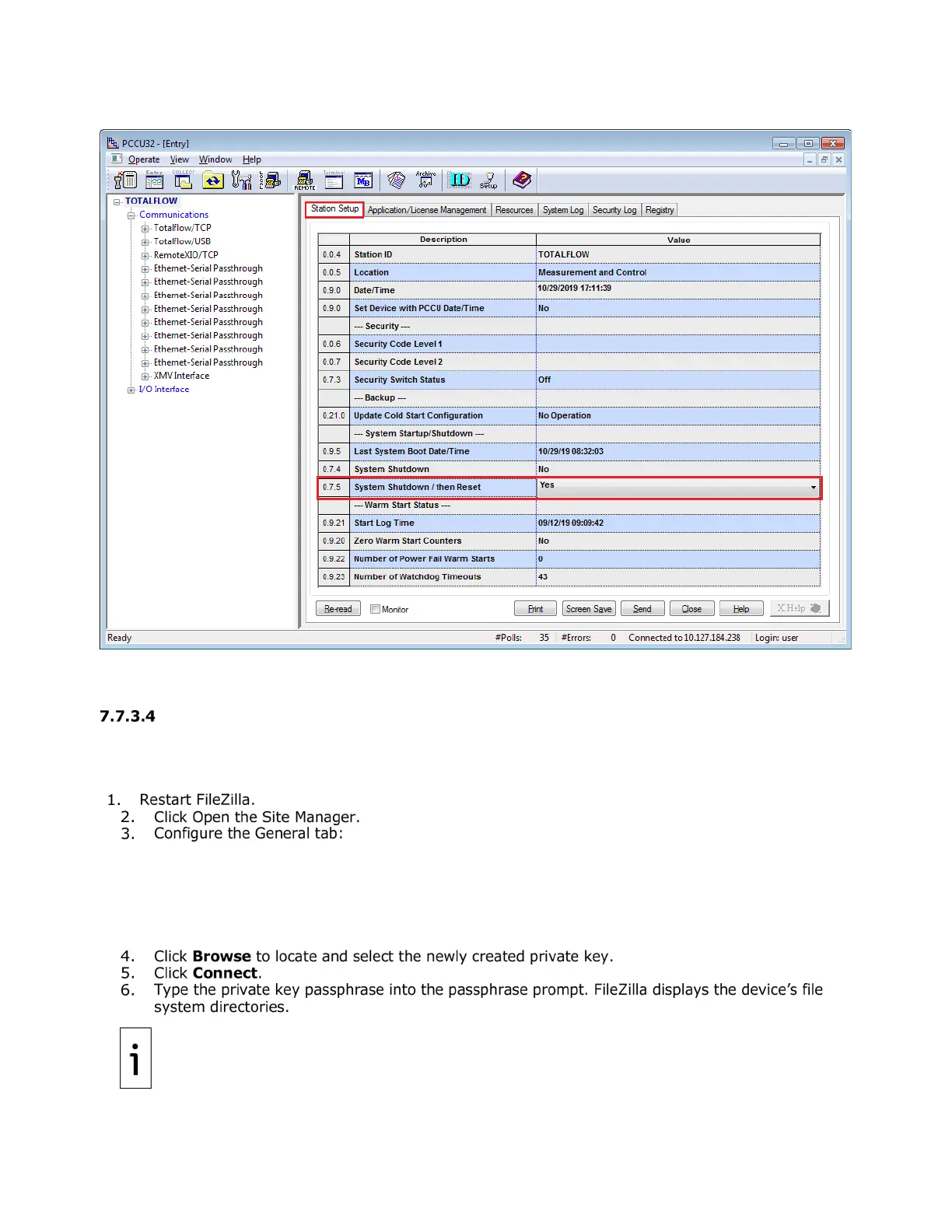 Figure 7-34: Restart Totalflow device after public key update