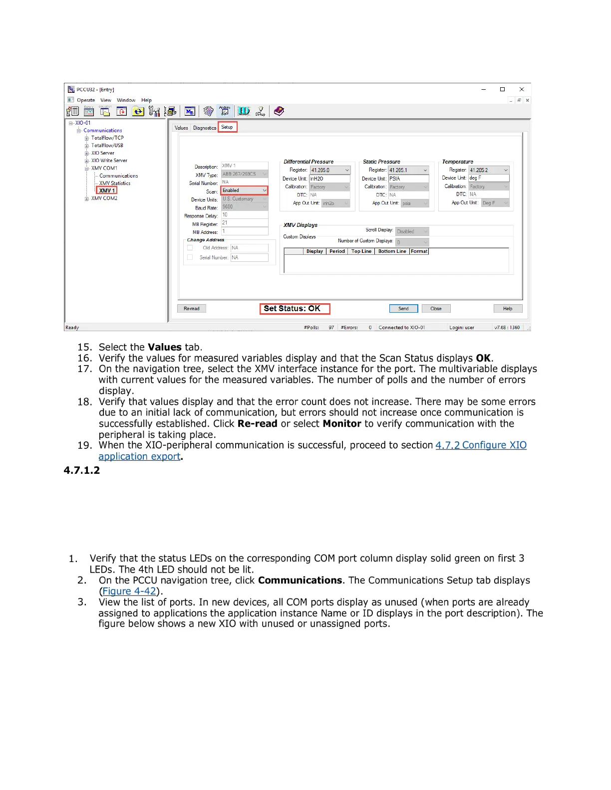 Figure 4-41: XMV Setup (Set Status OK)