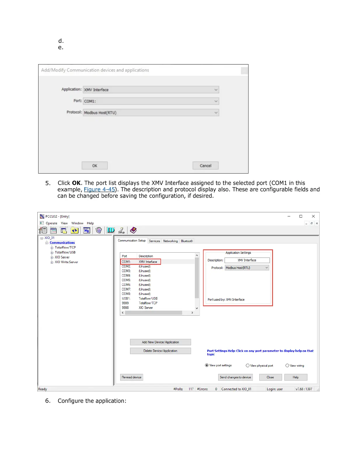 Figure 4-45: Add XMV Interface for COM1 default app name