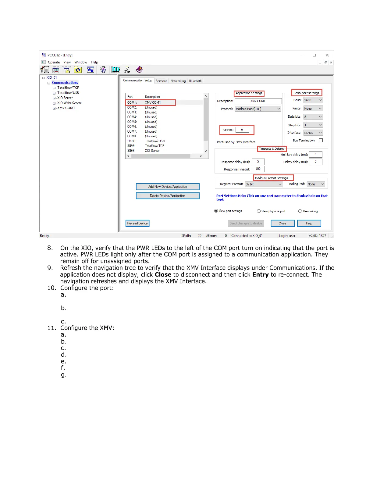 Figure 4-47: XMV Interface for XIO COM1 default communication and format settings