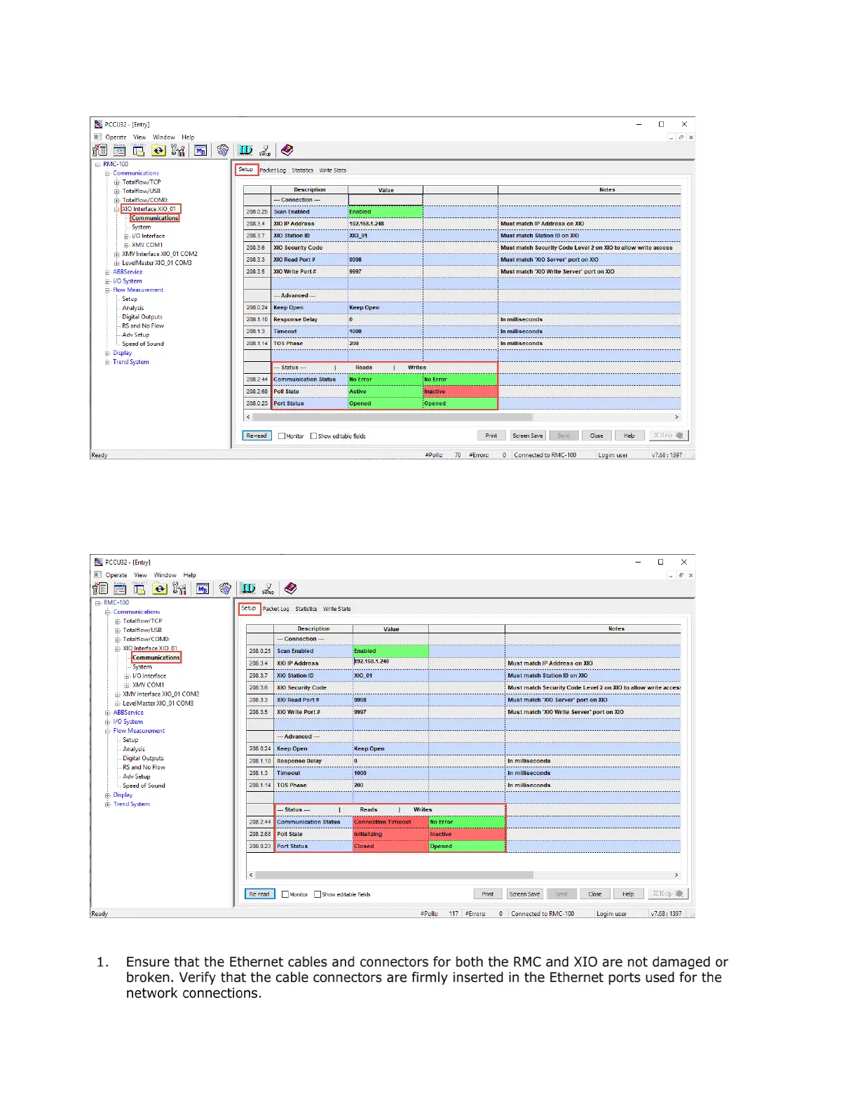 A broken connection, or one with excessive errors, displays communication status errors, poll state for