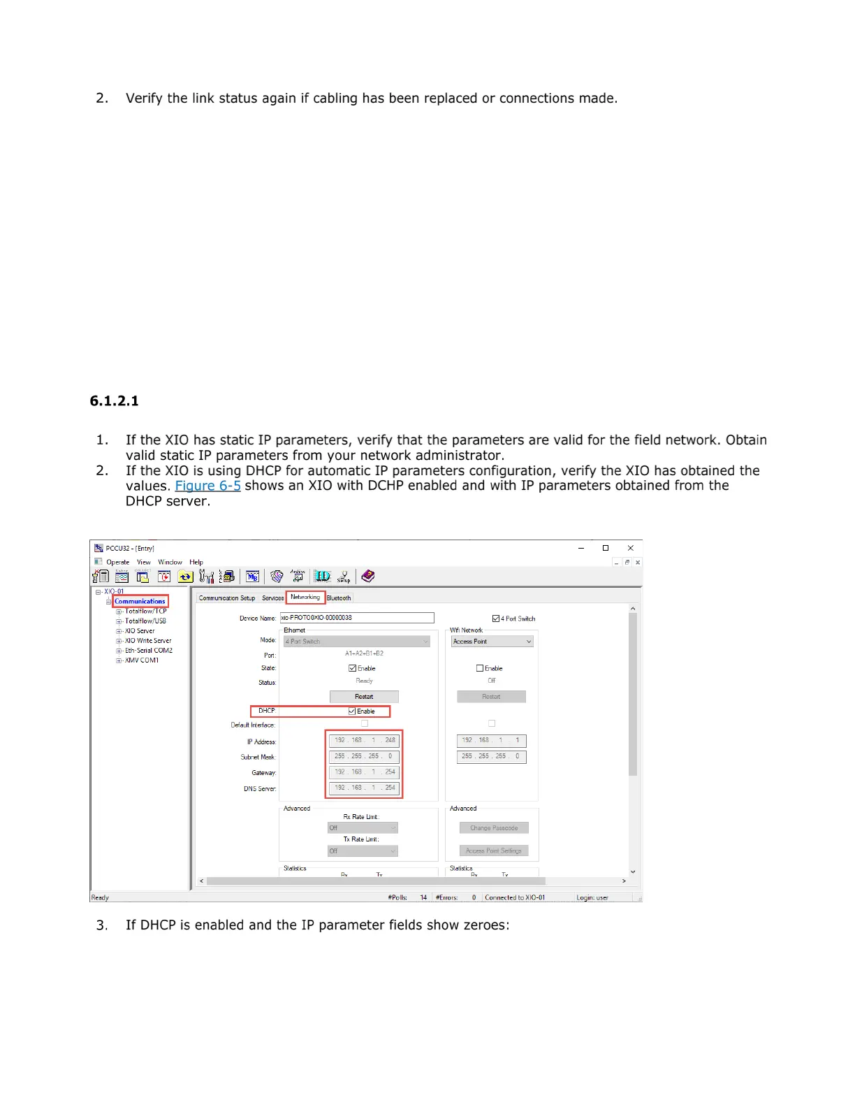 connections are correct. Proceed to verify the IP parameters in the next section.