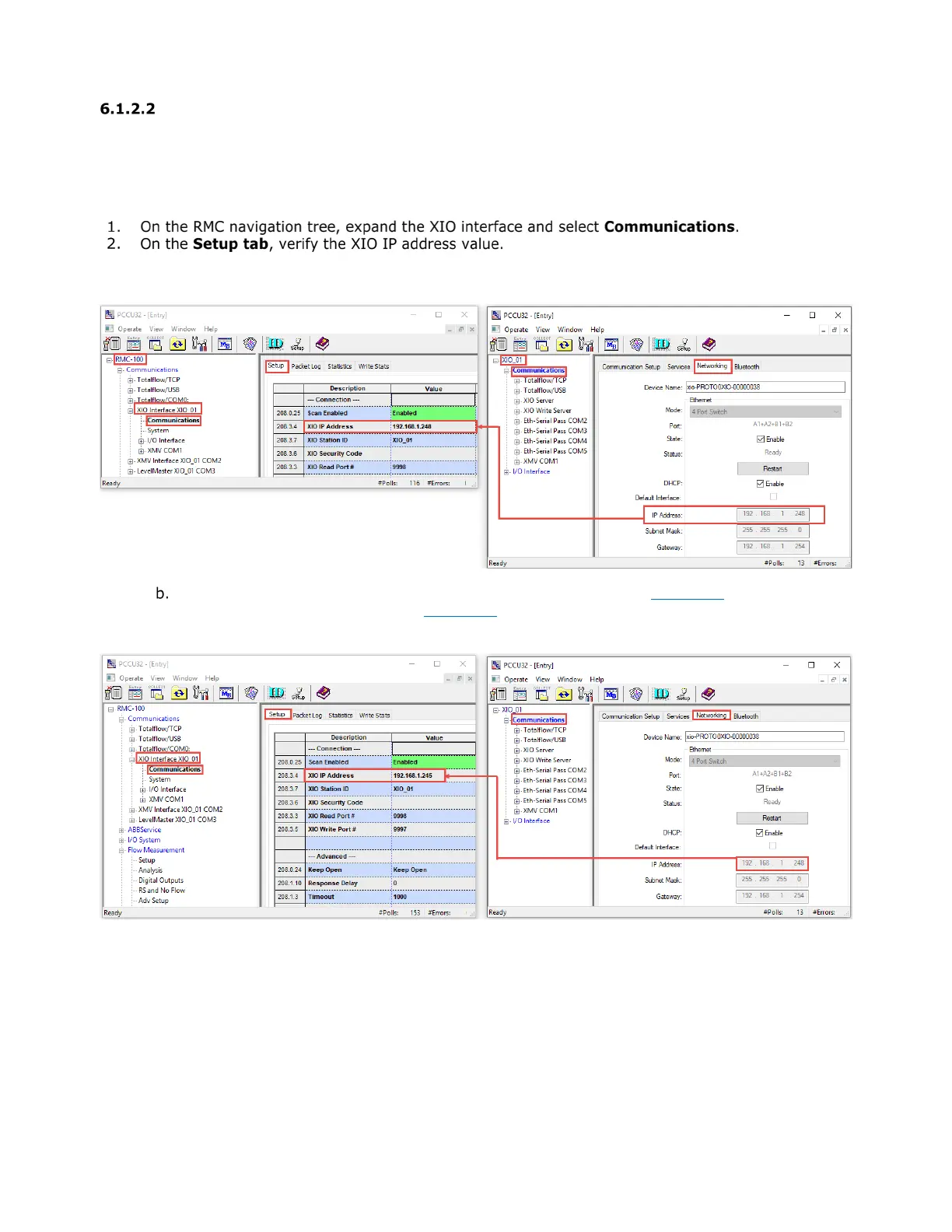 Figure 6-6: Correct XIO IP address – IP address match on both the RMC and XIO