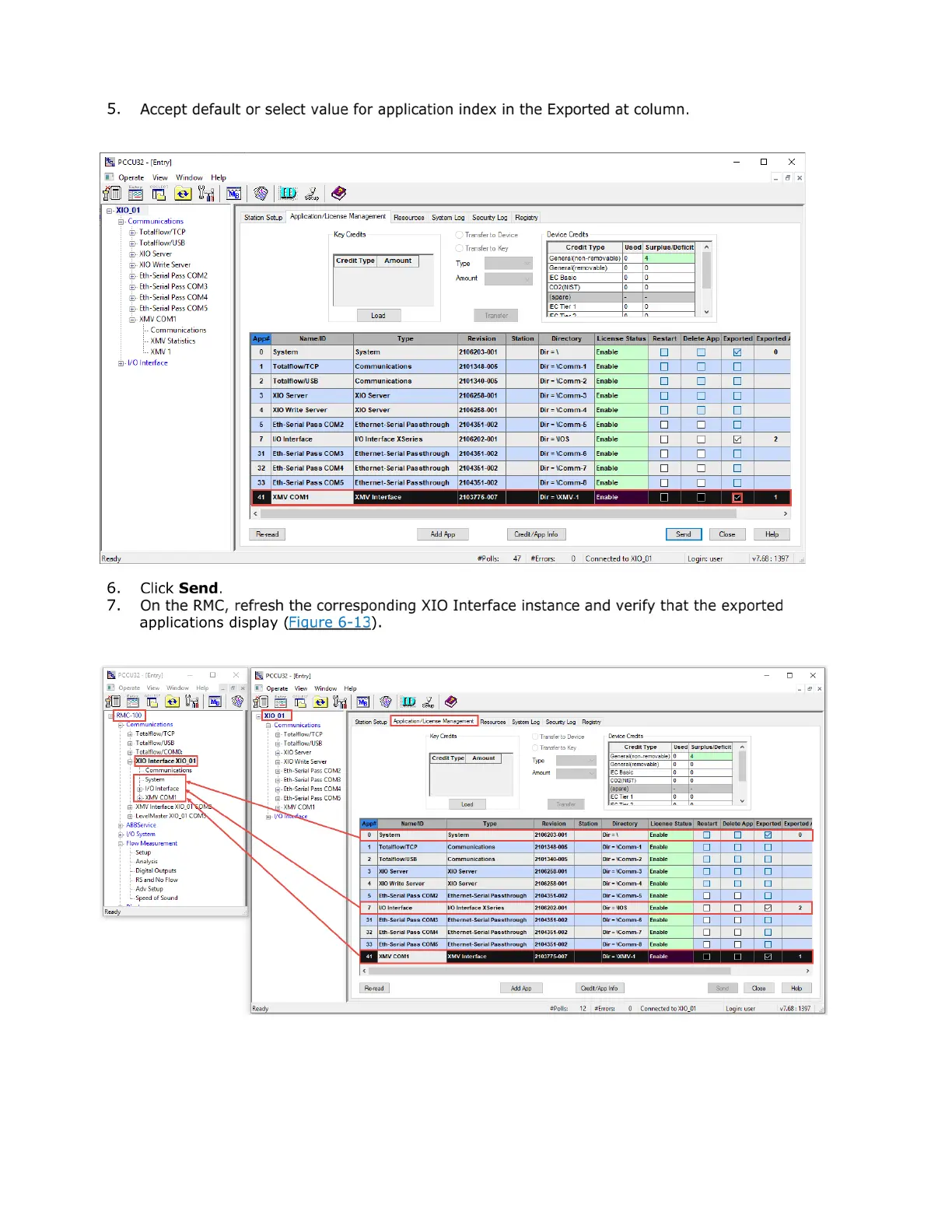 Figure 6-13: Exported XIO applications available on the RMC