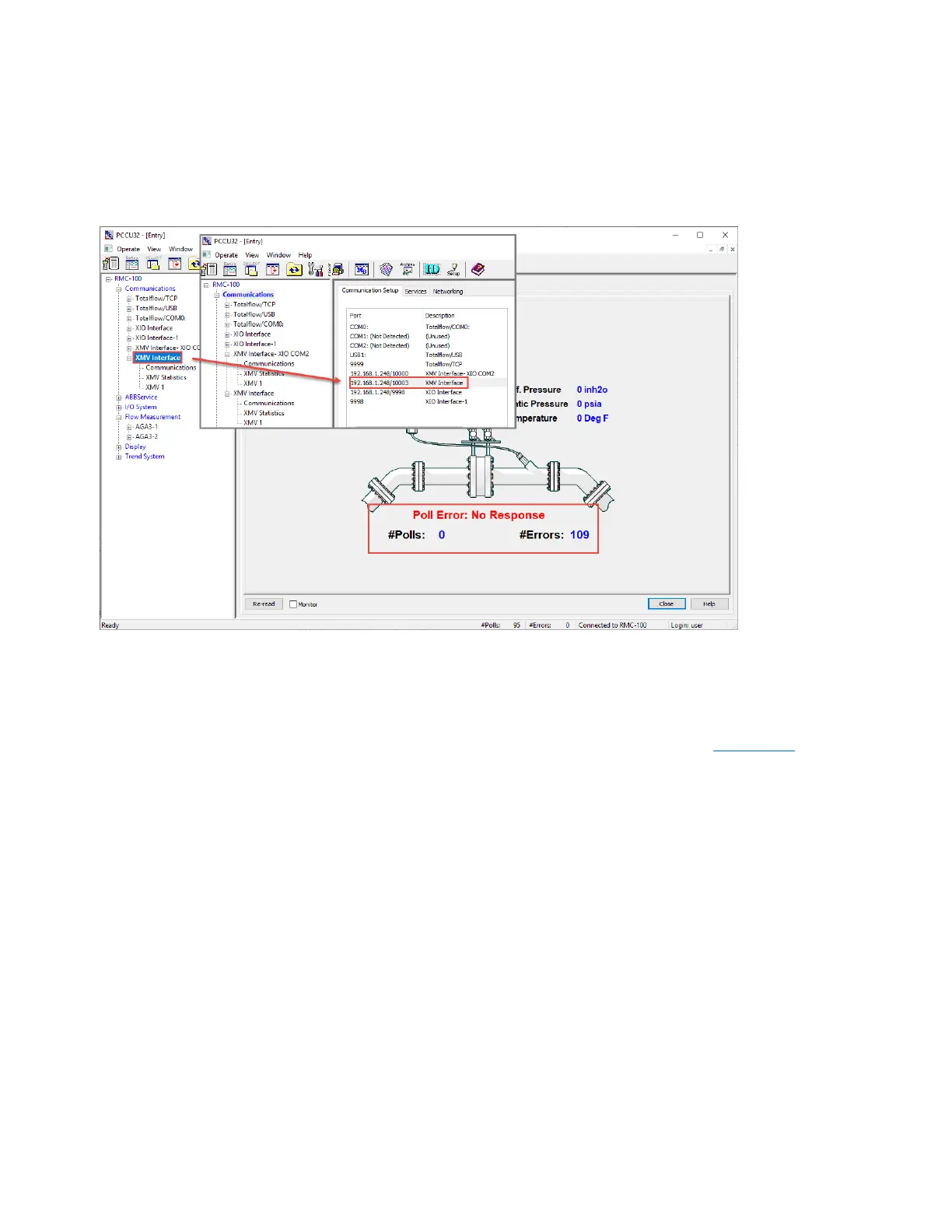 A mismatched or missing TCP port on either the RMC or XIO prevents communication. Figure 6-15 shows