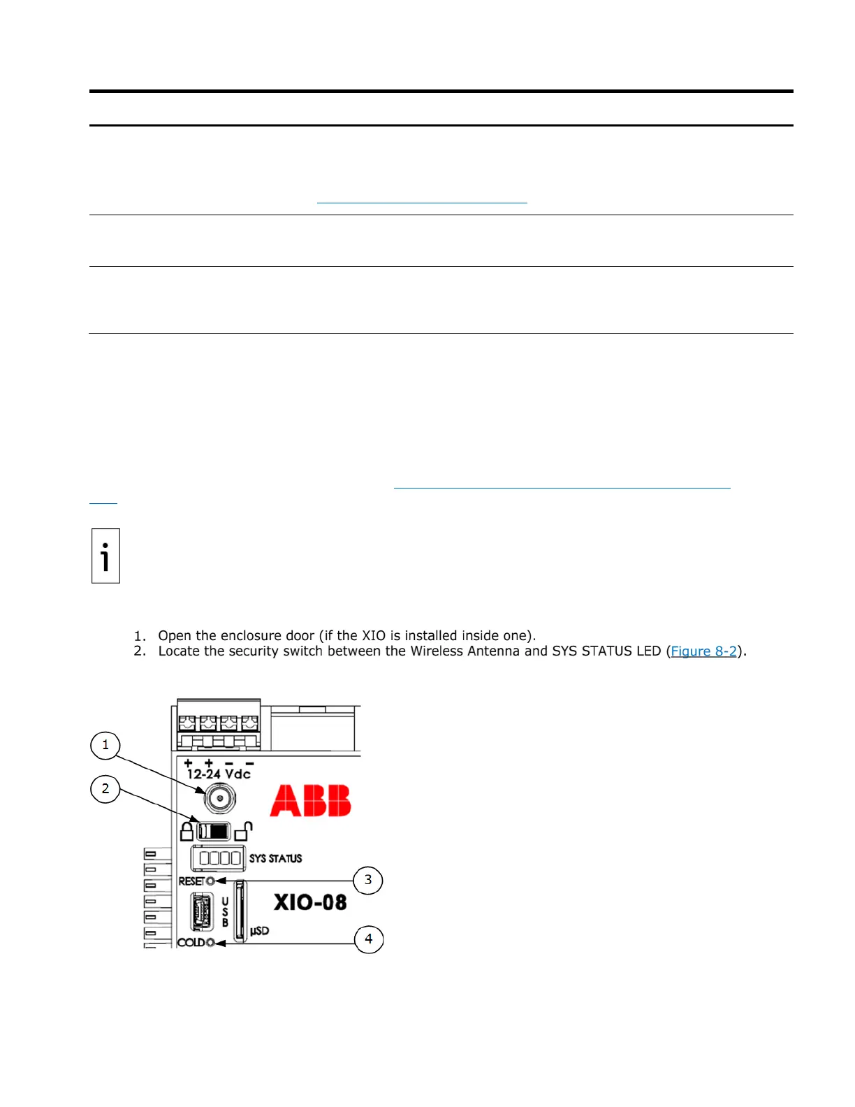 This procedure activates secured access to the XIO by changing the default (OFF) position of the security