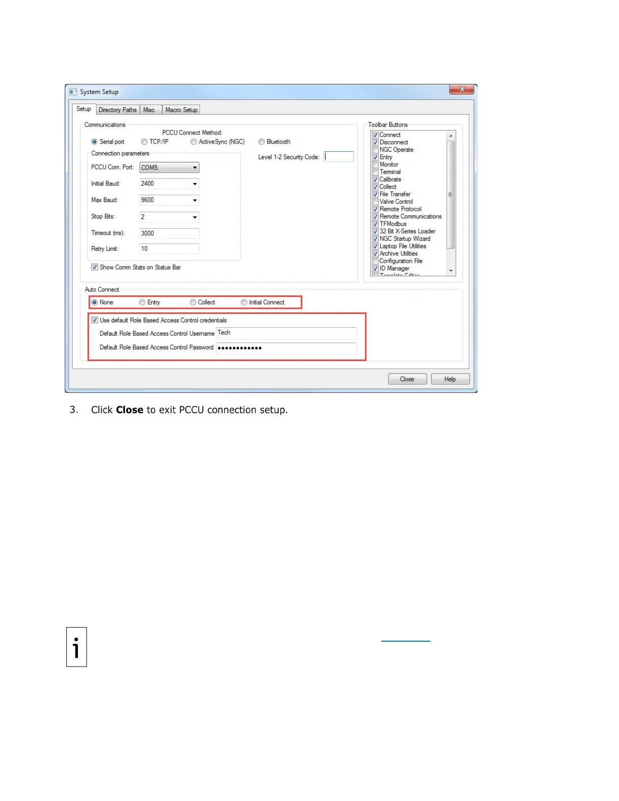 Figure 8-16: System Setup Auto Connect and RBAC credentials